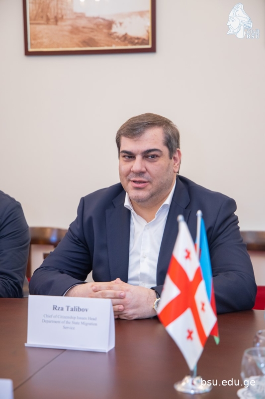 ბსუ-ს აზერბაიჯანის რესპუბლიკის მიგრაციის სახელმწიფო სამსახურის მოქალაქეობის საკითხთა დეპარტამენტის უფროსი, სახელმწიფო მიგრაციის სამსახურის III რანგის მრჩეველი, ბსუ-ს საპატიო დოქტორი, რზა თალიბოვი ეწვია. უნივერსიტეტის რექტორთან, ტიტე აროშიძესთან გამართულ შეხვედრაზე მხარეებმა თანამშრომლობის გაღრმავებასა და ერთობლივ პროექტებზე ისაუბრეს. ყურადღება გაამახვილეს სტუდენტებისა და აკადემიური პერსონალის გაცვლით პროგრამებზე, ასევე კვლევითი მიმართულებების განვითარების პერსპექტივებზე.