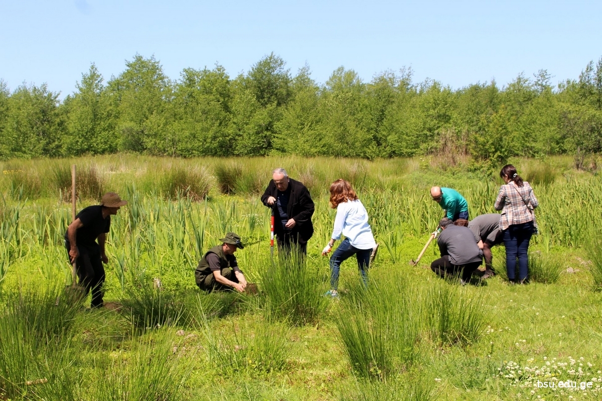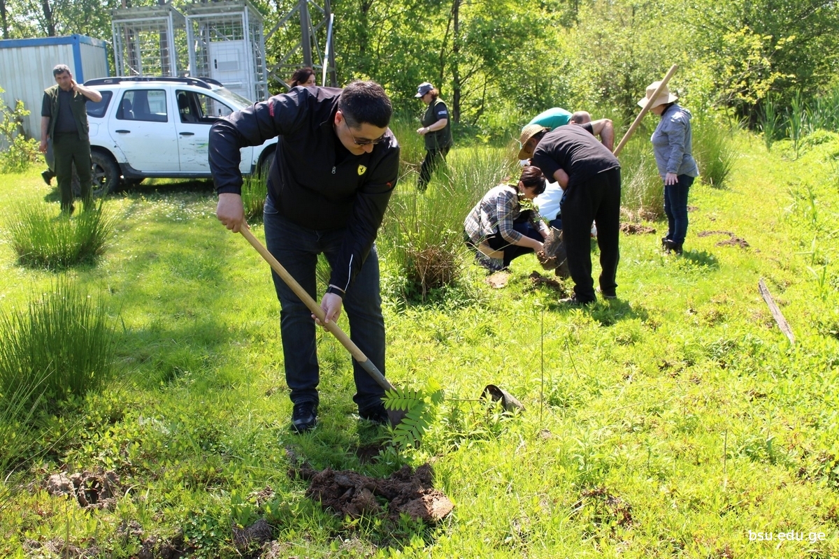 Planting of Pterocarya fraxinifolia , one of the species of IUCN Red List, grown up on the basis of the Research Department of Conservation of Kolkheti mires and Water Eco-systems in the Nursery of Batumi Shota Rustaveli State University Phytopathology and Biodiversity Institutes, in the territory of the National Park within the Municipality of Lanchkhuti in the direction to Supsa, has been started. The event involved the students from Rustaveli State University, staff of the nursery of the Institute, State Representative –Governor in the Municipalities of Lanchkhuti Mr. Merab Tchanukvadze and other representatives of administration, Mr. Aleksandre Khabeishvii, Director of the National Park, Mr. Aleksandre Sarishvili, Mayor of the Municipality of Lanchkhuti, Mr.Besik Tabidze, Chair of Sakrebulo and the representatives of various institutions.