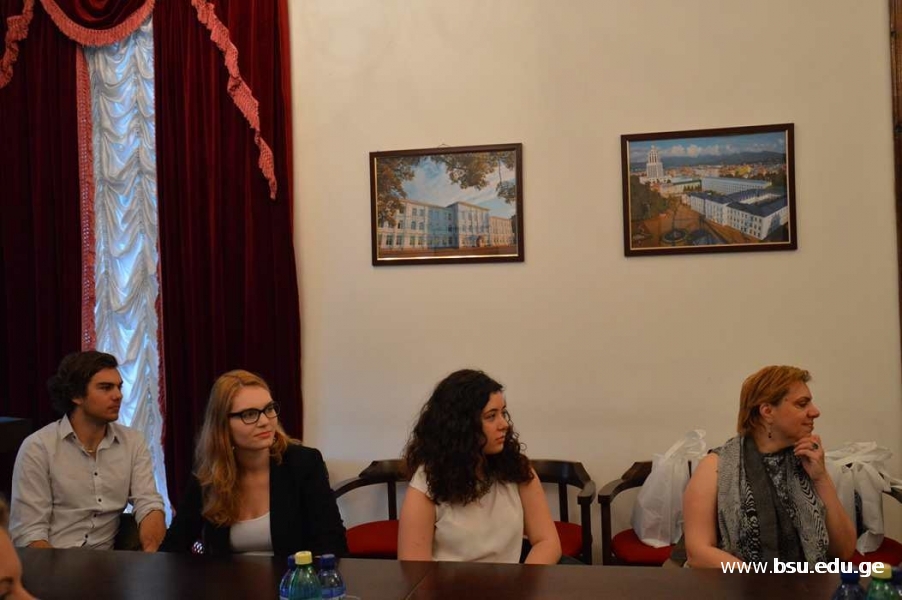 The students discussed the role of the media and nationalism during war and peace, their interrelation and the role of propaganda, and the Balkan war. The training dates are 6-10 June. The initiative group was hosted by Inga Shamilishvili, Vice Rector of BSU, who honored the visiting students with memorable gifts. The parties expressed readiness for the future collaboration.