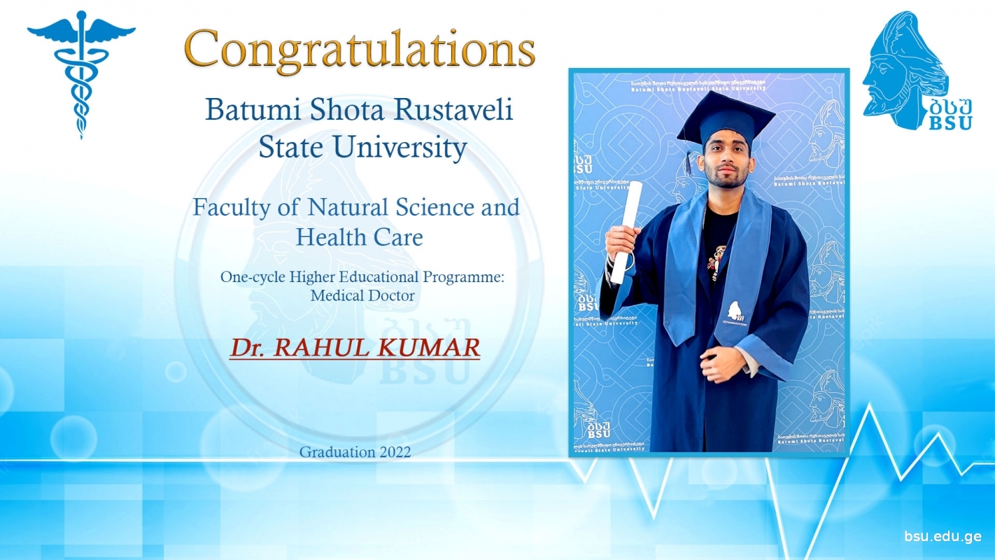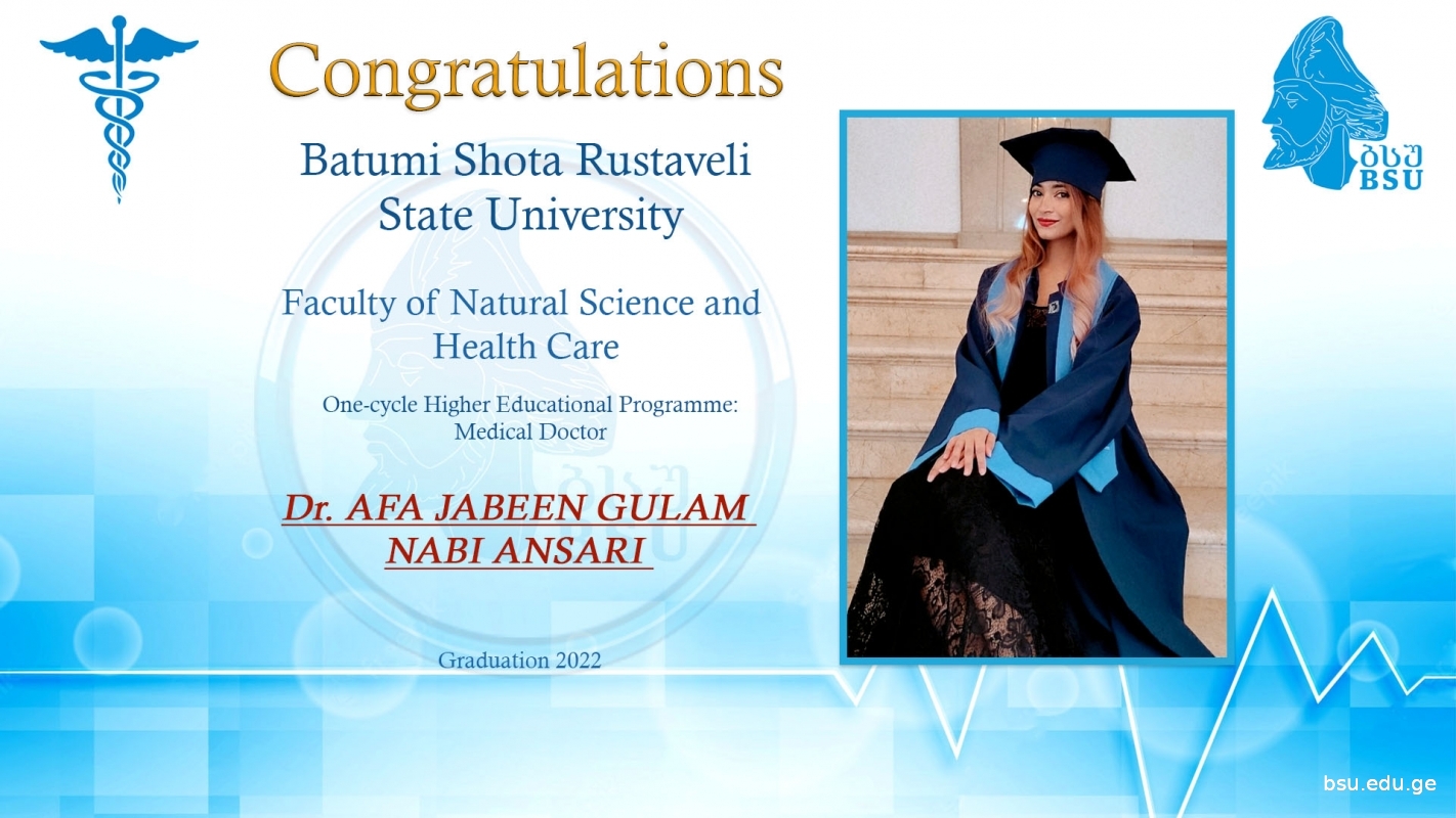 The graduates of Batumi Shota Rustaveli State University Educatonal Programme of Medical Doctor instructed in English successfully passed the FMG exam (Foreign Medical Graduates Examination) in India. FMGE is conducted in India every 6 months. Students take the exam in 20 different subjects and the exam ticket consists of 300 multiple-choice questions. The exam is considered passed if the graduate passes the 150-point threshold.