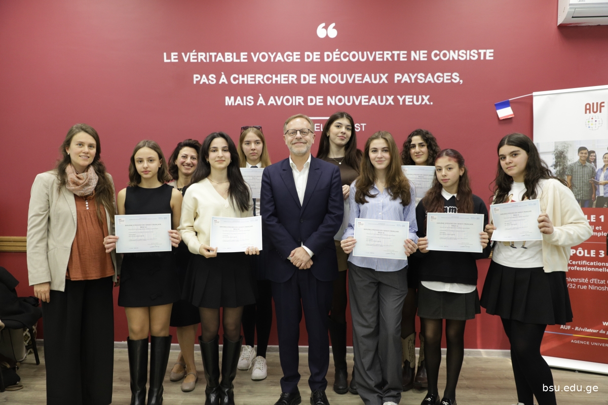 ბსუ-ს 90 წლის იუბილეს ღონისძიების ფარგლებში ანჟეს უნივერსიტეტის (საფრანგეთი) ტურიზმის ეროვნული ინსტიტუტის (INNTO-ESTHUA) თანამშრომლები: პროფ. დენალი ბუტენი და საერთაშორისო ურთიერთობების სამსახურის სპეციალისტი კამილ პუსერ-ვიელი სტუმრობდნენ.