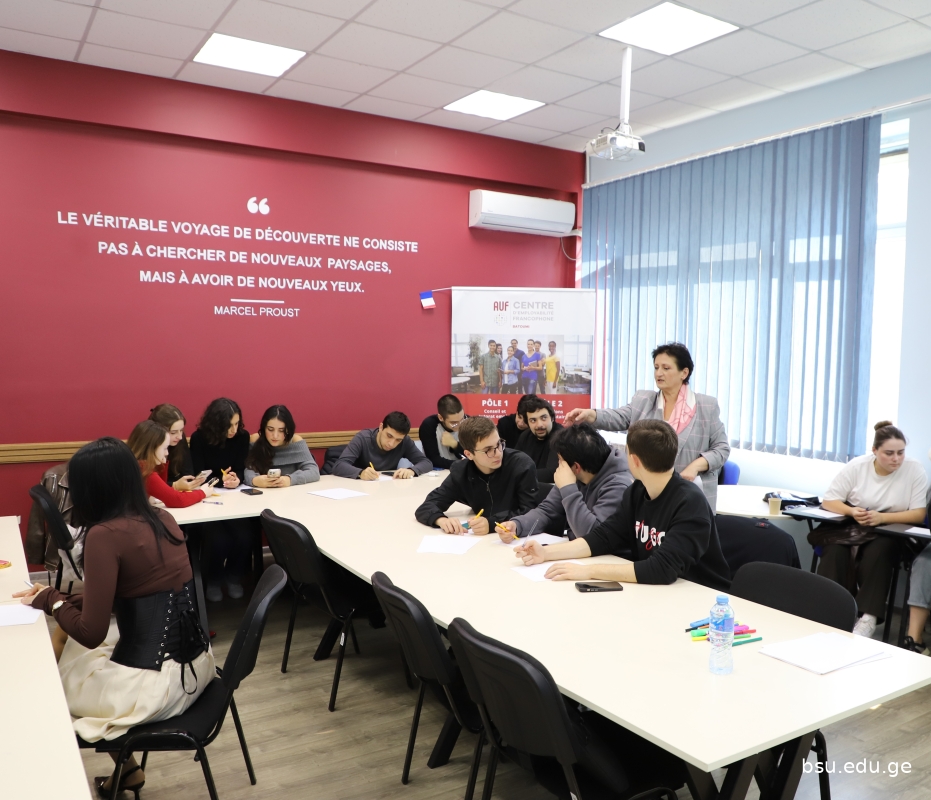 ბსუ-ს 90 წლის იუბილეს ღონისძიების ფარგლებში ანჟეს უნივერსიტეტის (საფრანგეთი) ტურიზმის ეროვნული ინსტიტუტის (INNTO-ESTHUA) თანამშრომლები: პროფ. დენალი ბუტენი და საერთაშორისო ურთიერთობების სამსახურის სპეციალისტი კამილ პუსერ-ვიელი სტუმრობდნენ.