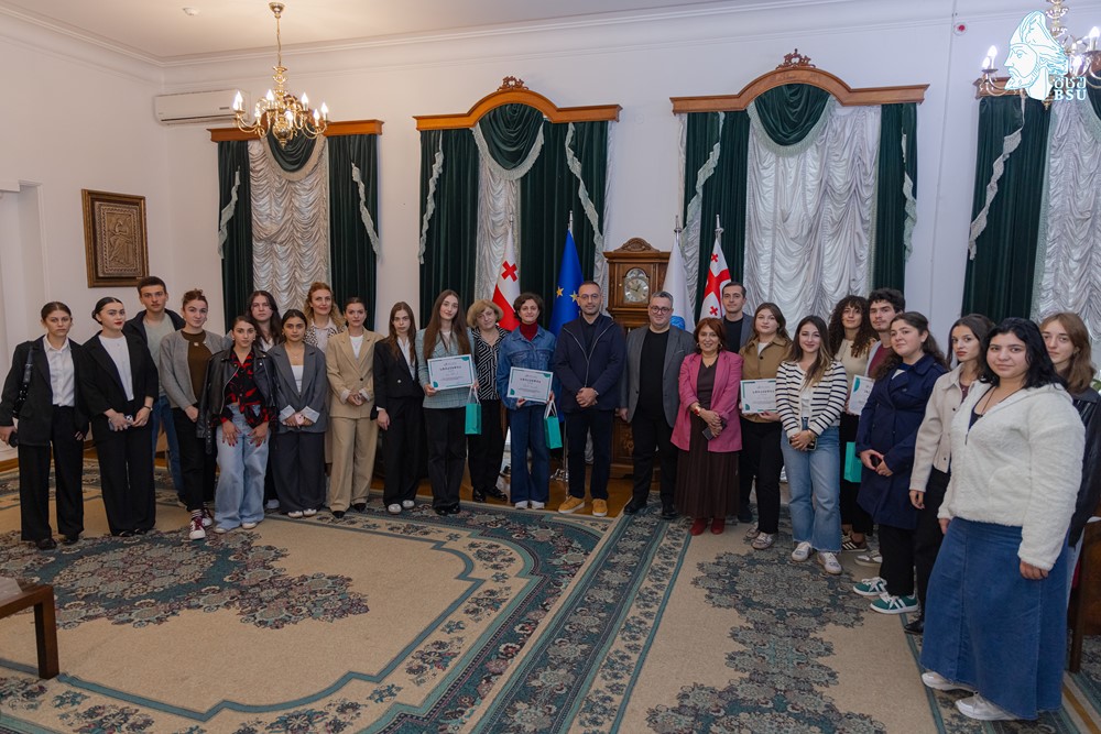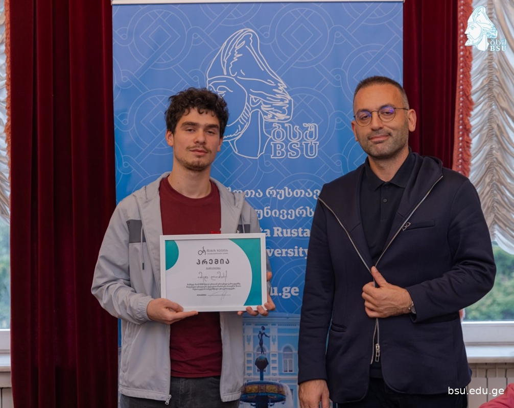 პრემია გადაეცა ერთიან ეროვნულ გამოცდებზე ქართულ ენასა და უცხო ენაში ყველაზე მაღალი შედეგის მქონე ბსუ-ს მათემატიკის საბაკალავრო საგანმანათლებლო პროგრამის სტუდენტს იმედა ლომაძეს.