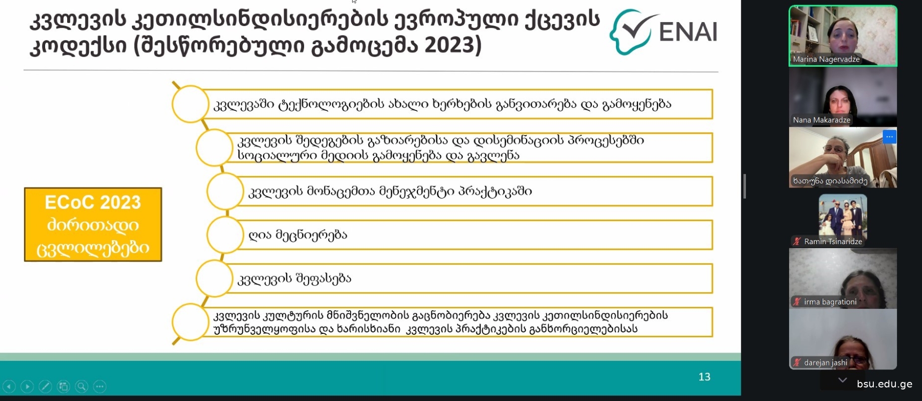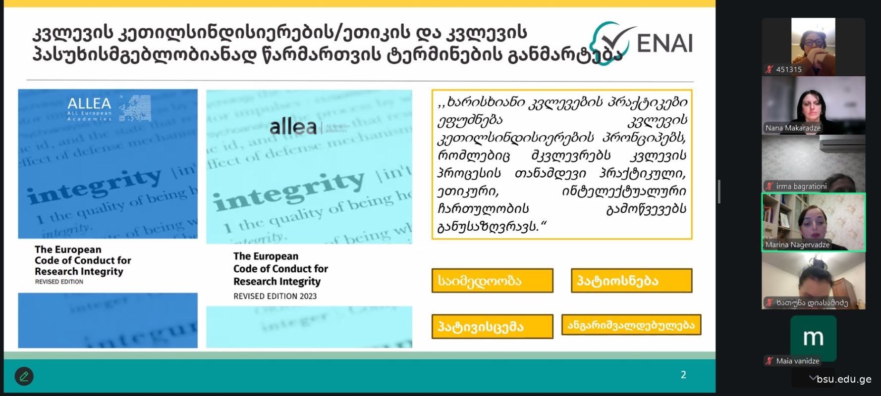 პროექტის ETHICS ფარგლებში ბსუ-ს პერსონალისთვის მოკლევადიანი კურსი „კვლევის ეთიკა და კეთილსინდისიერება“ ჩატარდა