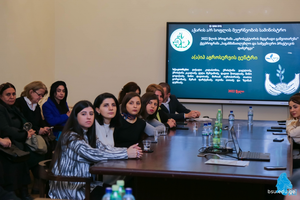 ბათუმის შოთა რუსთაველის სახელმწიფო უნივერსიტეტის ტექნოლოგიური და საბუნებისმეტყველო მეცნიერებათა და ჯანდაცვის ფაკულტეტის ოცმა სტუდენტმა და კურსდამთავრებულმა აჭარის ა.რ. სოფლის მეურნეობის სამინისტროს 2022 წლის ქვეპროგრამის „საგანმანათლებლო და სამეცნიერო პრაქტიკის დანერგვის“ ფარგლებში, სამინისტროსა და მის საქვეუწყებო დაწესებულებებში ანაზღაურებადი, ცხრათვიანი სტაჟირება გაიარა. სტაჟიორებმა უნივერსიტეტში შემაჯამებელი პრეზენტაცია წარმოადგინეს და სასწავლო პრაქტიკის შესახებ ისაუბრეს. პროგრამაში მონაწილე სტუდენტებს სერტიფიკატები გადასცეს და წარმატებები უსურვეს აჭარის ა.რ. სოფლის მეურნეობის მინისტრმა ზაზა შავაძემ, ბსუ-ს რექტორმა, პროფესორმა მერაბ ხალვაშმა, ადმინისტრაციის ხელმძღვანელმა მერაბ დიასამიძემ, აჭარის ა.რ. სოფლის მეურნეობის მინისტრის მოადგილემ ირმა აფხაზავამ.