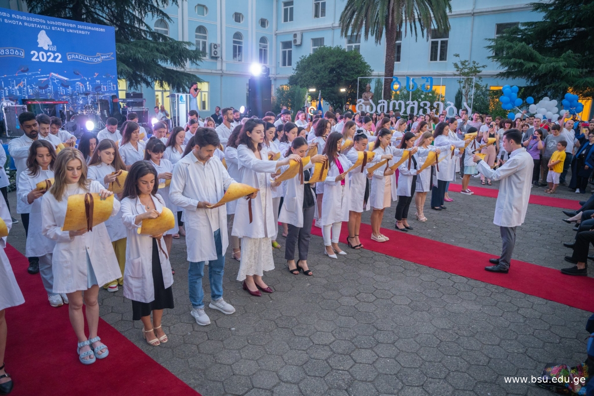 ბათუმის შოთა რუსთაველის სახელმწიფო უნივერსიტეტში კურსდამთავრებულთა გამოშვების 85-ე საიუბილეო საზეიმო ღონისძიება გაიმართა. მანტიებში გამოწყობილ კურსდამთავრებულებს უნივერსიტეტის რექტორმა, პროფესორმა მერაბ ხალვაშმა, რექტორის მოადგილეებმა, ხარისხის უზრუნველყოფის სამსახურის უფროსმა, საკანონმდებლო და აღმასრულებელი ხელისუფლების წარმომადგენლებმა სწავლის დასრულება მიულოცეს, წარმატებები უსურვეს და სერტიფიკატები გადასცეს.