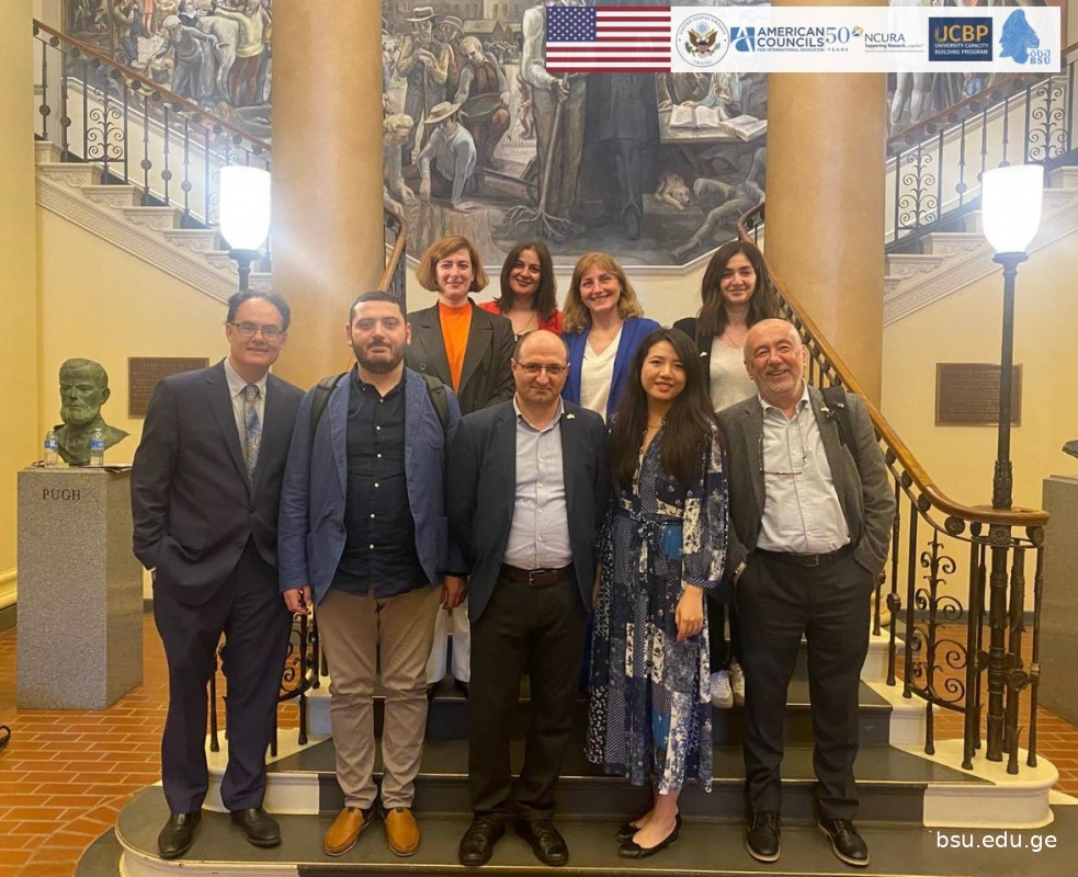 Within the framework of the "University Capacity Development Program" (UCBP), funded by the US State Department and the US Embassy in Georgia, the BSU Deputy Rector Anzor Beridze, the representatives of the Ministry of Education, Science and Youth of Georgia, the Shota Rustaveli National Science Foundation and various higher educational institutions of Georgia paid a visit to the USA. At the meetings held on May 13-25, representatives of various American universities shared with the members of the delegation the experience of the research administrators of American universities, the specifics of working with scientific foundations and presented specific research projects.