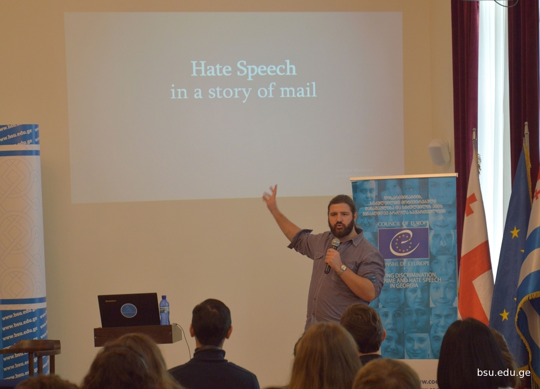 ბათუმის შოთა რუსთაველის სახელმწიფო უნივერსიტეტში ევროპის საბჭოს პროექტის „დისკრიმინაციის, სიძულვილის ენის და სიძულვილის მოტივით ჩადენილი დანაშაულების წინააღმდეგ ბრძოლა საქართველოში“ ფარგლებში საინფორმაციო შეხვედრა ჩატარდა თემაზე: „არა სიძულვილის ენას: ცნობიერების ამაღლების ახალგაზრდული კამპანიის საუკეთესო მაგალითები“. სპიკერებმა, ევროპის საბჭოს არა სიძულვილის ენის ცნობიერების ამაღლების კამპანიის აქტივისტებმა მარია ანდრეევამ და გუბაზ კობერიძემ სტუდენტებს ისეთი მნიშვნელოვანი საკითხები გააცნეს, როგორიცაა: სიძულვილის ენა, მასთან ბრძოლის საშუალებები, ცნობიერების ამაღლების კამპანიის მეთოდები ევროპის საბჭოს არა სიძულვილი ენის კამპანიის მაგალითზე და სამომავლო გეგმები. პროექტი მიზნად ისახავს გამოცდილების გაზიარებას, შესაძლებლობების განვითარებას, ადვოკატირებასა და ცნობიერების ამაღლებას.