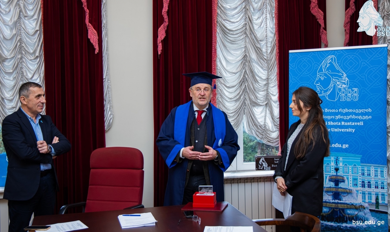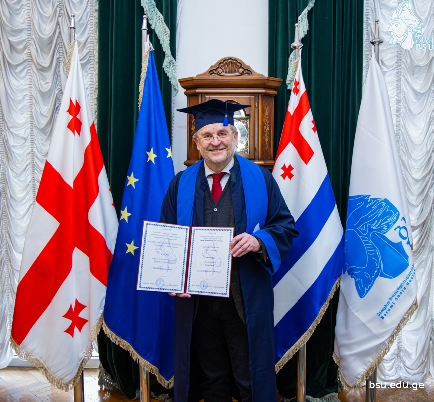 The Academic Council of Batumi Shota Rustaveli State University granted the title of Honorary Doctor to the Doctor of Political Science, researcher of Paris Lodron University of Salzburg Franz Kok. Dr. Franz Kok has made a great contribution to the internationalization of BSU and the implementation of international projects. Researcher Franz Kok is the head of the political science program at the University of Salzburg, the executive director of PoSIG -the joint master`s program in Political Science in Salzburg, Tirana, Ljubljana, Skopje, Sarajevo and others - and the consortium; Coordinator of International Relations, Student Counseling and Erasmus+ Office of the University of Salzburg`s Department of Political Science, leads the Salzburg Eco-Energy Exchange Association.