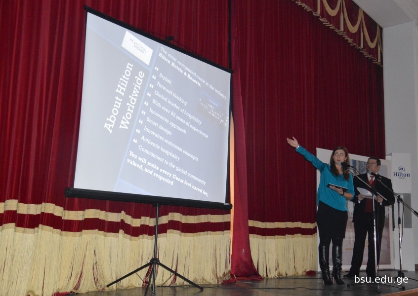 ,,HILTON ბათუმის“ გენერალური მენეჯერი სტუარტ ნელსონი და HILTON-ის სათაო ოფისის წარმომადგენლები ბათუმის შოთა რუსთაველის სახელმწიფო უნივერსიტეტის ტურიზმის ფაკულტეტის სტუდენტებს შეხვდნენ. კოპანიის გენერალურმა მენეჯერმა სტუდენტებს ,,HILTON ბათუმი“ და საერთაშორისო ბრენდის სტანდარტები წარუდგინა. სტუარტ ნელსონმა შეხვედრაზე ასევე ისაუბრა ტურიზმის ფაკულტეტთან პარტნიორობის სტრატეგიაზე და სტუდენტებს დასაქმება შესთავაზა. „HILTON ბათუმი“ მესამე საერთაშორისო ბრენდია, რომელთანაც ტურიზმის ფაკულტეტი აქტიურ თანამშრომლობას იწყებს. საერთაშორისო ბრენდის სხვადასხვა კომპანიაში დღემდე ტურიზმის ფაკულტეტის 150-მდე სტუდენტია დასაქმებული. შეხვედრის დასასრულს ,,HILTON ბათუმის“ წარმომადგენლებმა 10 იღბლიან სტუდენტს საჩუქრად სასტუმროს მომსახურების პაკეტი გადასცეს.