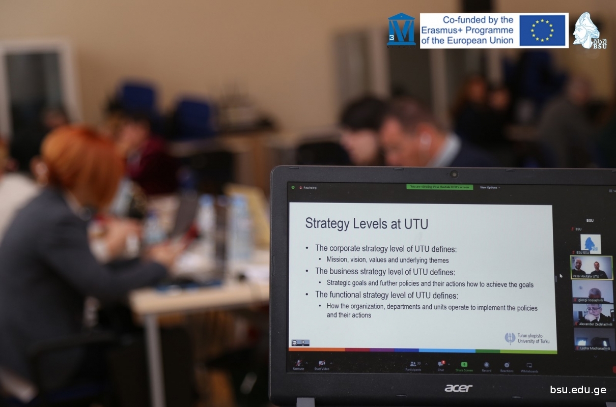 On May 16-18, Batumi Shota Rustaveli State University, hosts consortium members of the “Third Mission Quality Development and Compliance in Georgian Universities-SQUARE” funded by the Erasmus + Institutional Capacity Building Project as part of the training course “T2.2 Strategic Planning” conducted by Finnish and Portuguese experts. The training was opened by the Rector of BSU, Professor Merab Khalvashi and the Head of the Quality Assurance Service of TSU, Project Coordinator Irma Grdzelidze.