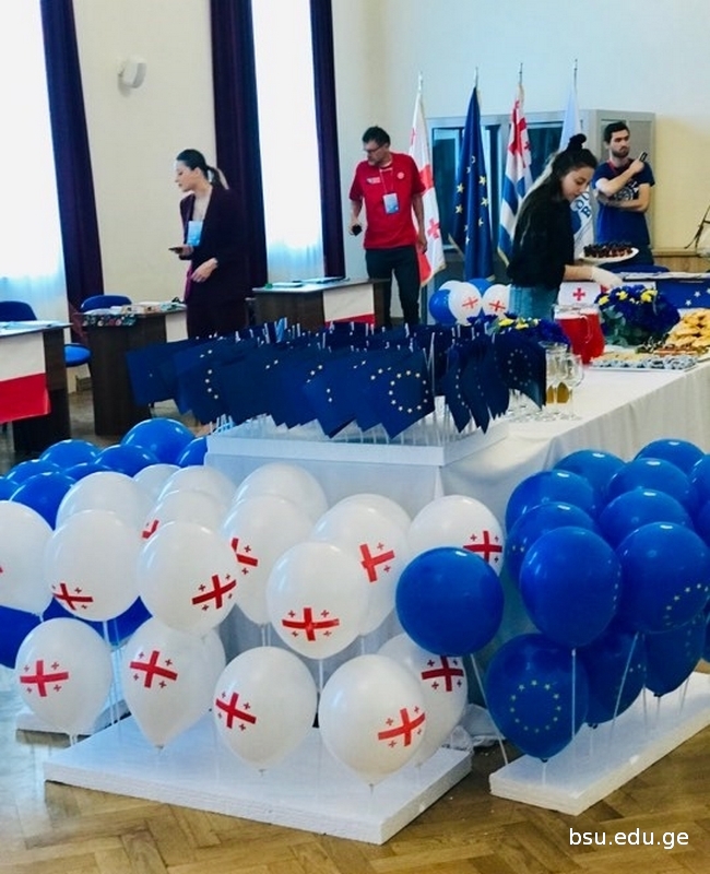 The BSU students of the ERASMUS+Exchange programme, representatives of the Bureau of Ajara of the NATO and EU Info Centre and the Girls’ Folk Ensemble “Tirini” also participated in the exhibition. The Day of Europe was organized by the Department of Strategic Development and International Relations of BSU.