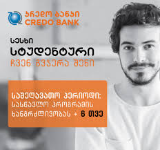 „კრედო ბანკი’’ სტუდენტებს სტუდენტურ სესხს სთავაზობს. სესხით სარგებლობა შეუძლია ყველა იმ სტუდენტსა და აბიტურიენტს, ვინც უკვე ჩააბარა უნივერსიტეტში და სურვილი აქვს დაიფინანსოს საკუთარი სწავლა-განათლება. მოცემული სესხის პირობების გათვალისწინებით, სესხის თანხის დაფარვის დაწყება სტუდენტს შეუძლია სწავლის დასრულებიდან 6 თვის შემდეგ.
