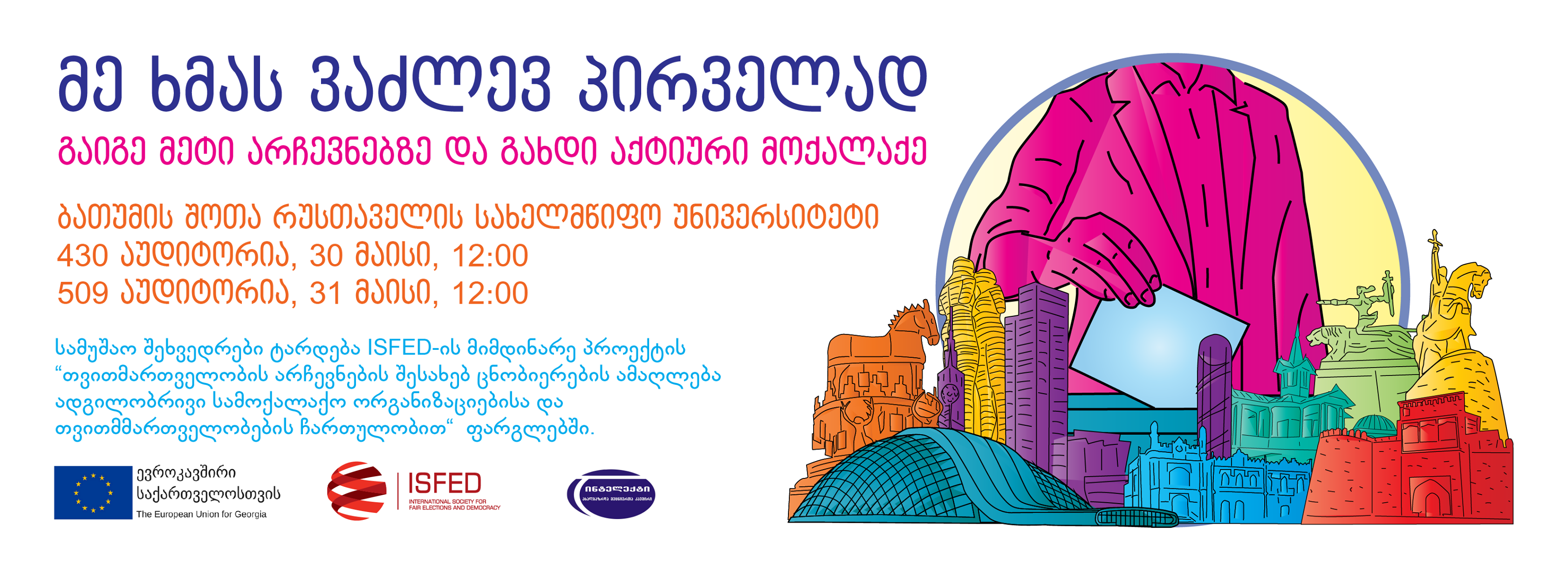 არასამთავრობო ორგანიზაციის ISFED-ის ორგანიზებით ბათუმის შოთა რუსთველის სახელმწიფო უნივერსიტეტის სტუდენტებისათვის გაიმართება სამუშაო შეხვედრა თემაზე: „მე ხმას ვაძლევ პირველად - გაიგე მეტი არჩევნზებზე და გახდი აქტიური მოქალაქე“