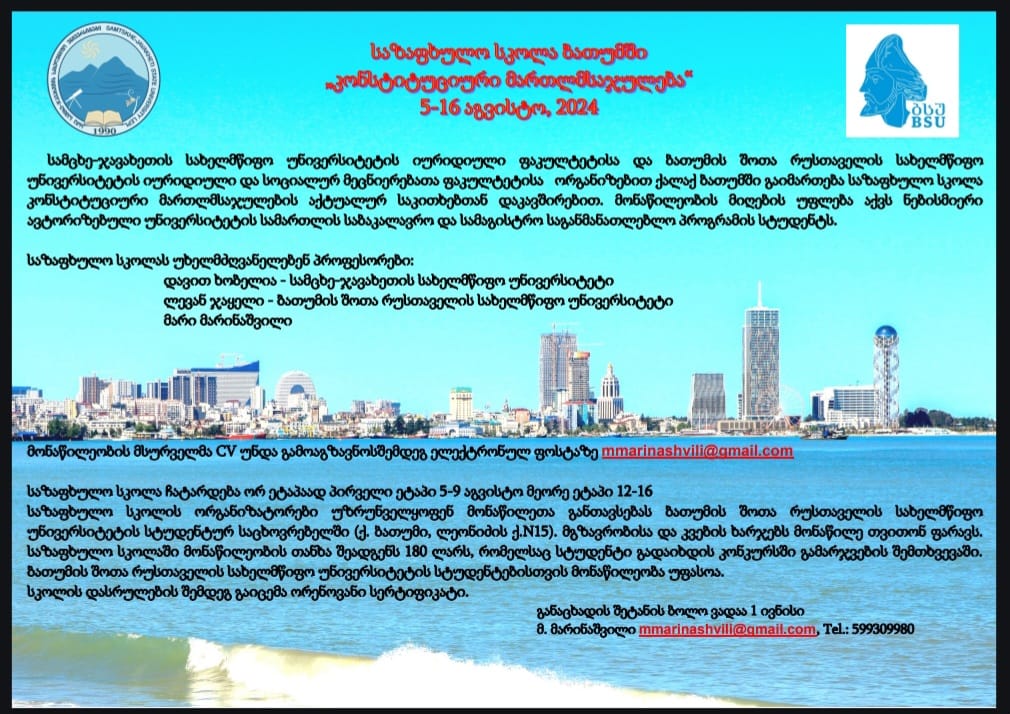 ბათუმის შოთა რუსთაველის სახელმწიფო უნივერსიტეტის ეკონომიკისა და ბიზნესის ფაკულტეტი გიწვევთ მონაწილეობის მისაღებად საერთაშორისო სამეცნიერო კონფერენციაში „ეკონომიკისა და ბიზნესის გლობალური გამოწვევები და მდგრადი განვითარება“ - 2024 კონფერენცია დაფინანსებულია აჭარის ავტონომიური რესპუბლიკის განათლების, კულტურისა და სპორტის სამინისტროს მიერ უმაღლესი განათლების ხელშეწყობის პროგრამის „კონფერენციის მოწყობა“ ფარგლებში.