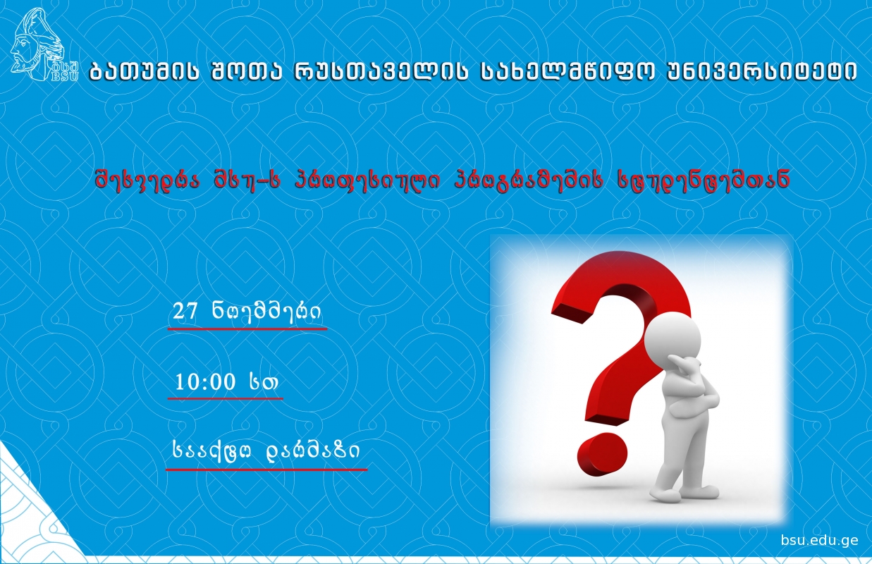 21 ნოემბერს, 14:00 საათზე, ბათუმის შოთა რუსთაველის სახელმწიფო უნივერსიტეტში, 307-ე აუდიტორიაში (II კორპუსი) ჩატარდება შოთა რუსთაველის ეროვნული სამეცნიერო ფონდის მიერ დაფინანსებული სამეცნიერო გრანტის - „დასავლეთ საქართველოში გავრცელებული კივის, ფეიჰოას, მოცვის და სხვა კენკროვნების ნაყოფის ქიმიური შედგენილობის შესწავლა მოკრეფის, შენახვის და შეფუთვის ოპტიმალური წესების დასადგენად“ პროექტის ანგარიში.