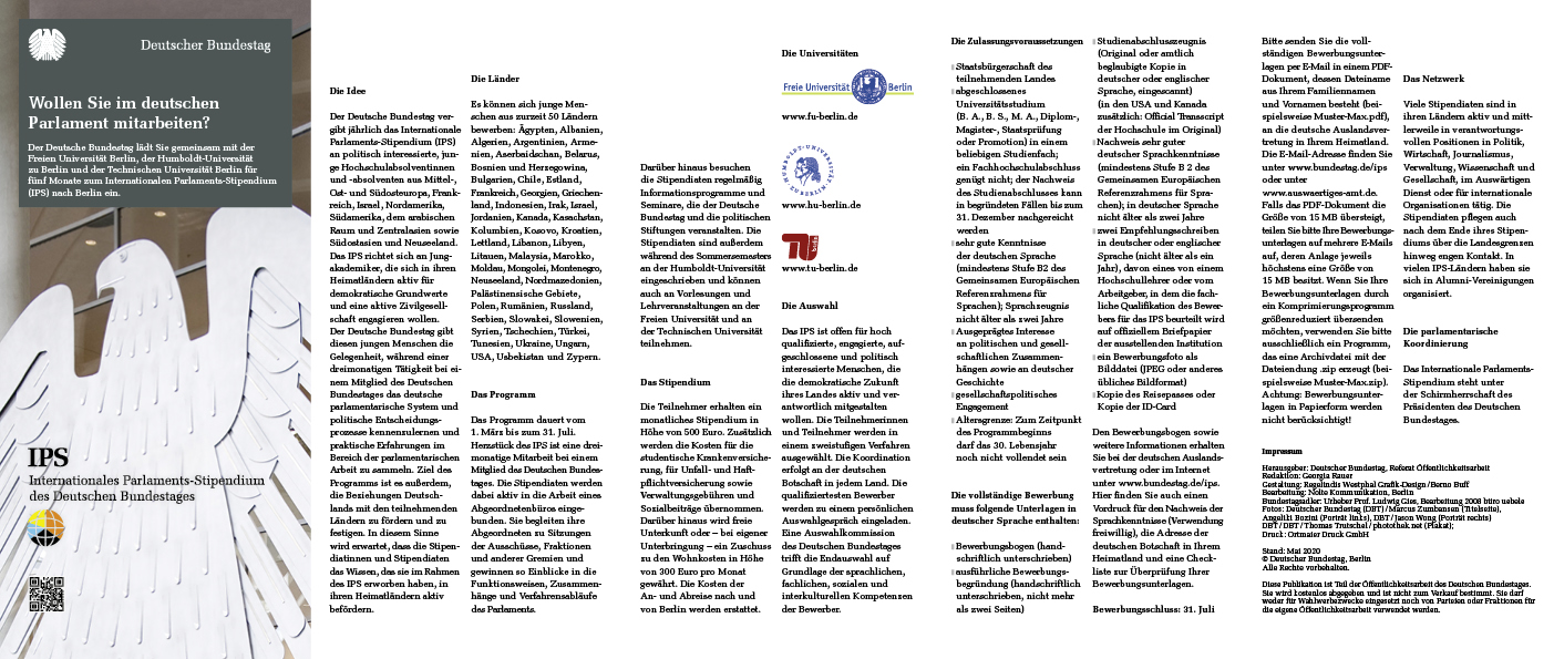 დამატებითი ინფორმაცია კონკურსისა და პროგრამის შესახებ იხილეთ ბუნდესტაგის ვებგვერდზე: www.bundestag.de/ips