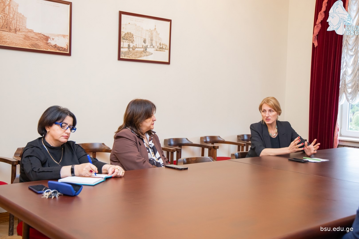 ბათუმის შოთა რუსთაველის სახელმწიფო უნივერსიტეტში პროექტის „მომავლის მასწავლებელი“ სამუშაო შეხვედრა გაიმართა. პროექტს საქართველოში ამერიკის შეერთებული შტატების საელჩოს დაფინანსებით საერთაშორისო ორგანიზაცია PH International-ი ბსუ-სა და სხვა უმაღლესი საგანმანათლებლო დაწესებულებების მონაწილეობით ახორციელებს. შეხვედრაზე აშშ-ის საელჩოს საგრანტო და უმაღლესი განათლების პროგრამების კოორდინატორმა სოფიო ბზიშვილმა, PH Internationa-ის საქართველოს წარმომადგენლობის დირექტორმა ბერდია ნაცვლიშვილმა, ბსუ-ს რექტორის მოადგილემ ანზორ ბერიძემ და ხარისხის უზრუნველყოფის სამსახურის უფროსმა ვლადიმერ ღლონტმა ბსუ-ს ადმინისტრაციასთან და პედაგოგიურ მეცნიერებათა დეპარტამენტის პროფესორ-მასწავლებლებთან ერთად განიხილეს პროექტით დაგეგმილი აქტივობების მნიშვნელობა და განხორციელების გზები. 18-თვიანი პროექტი ითვალისწინებს მასწავლებლის მომზადების საგანმანათლებლო პროგრამების გაუმჯობესებას და სწავლების ინოვაციური მეთოდების დანერგვას ამერიკის უნივერსიტეტების გამოცდილების მაგალითზე.