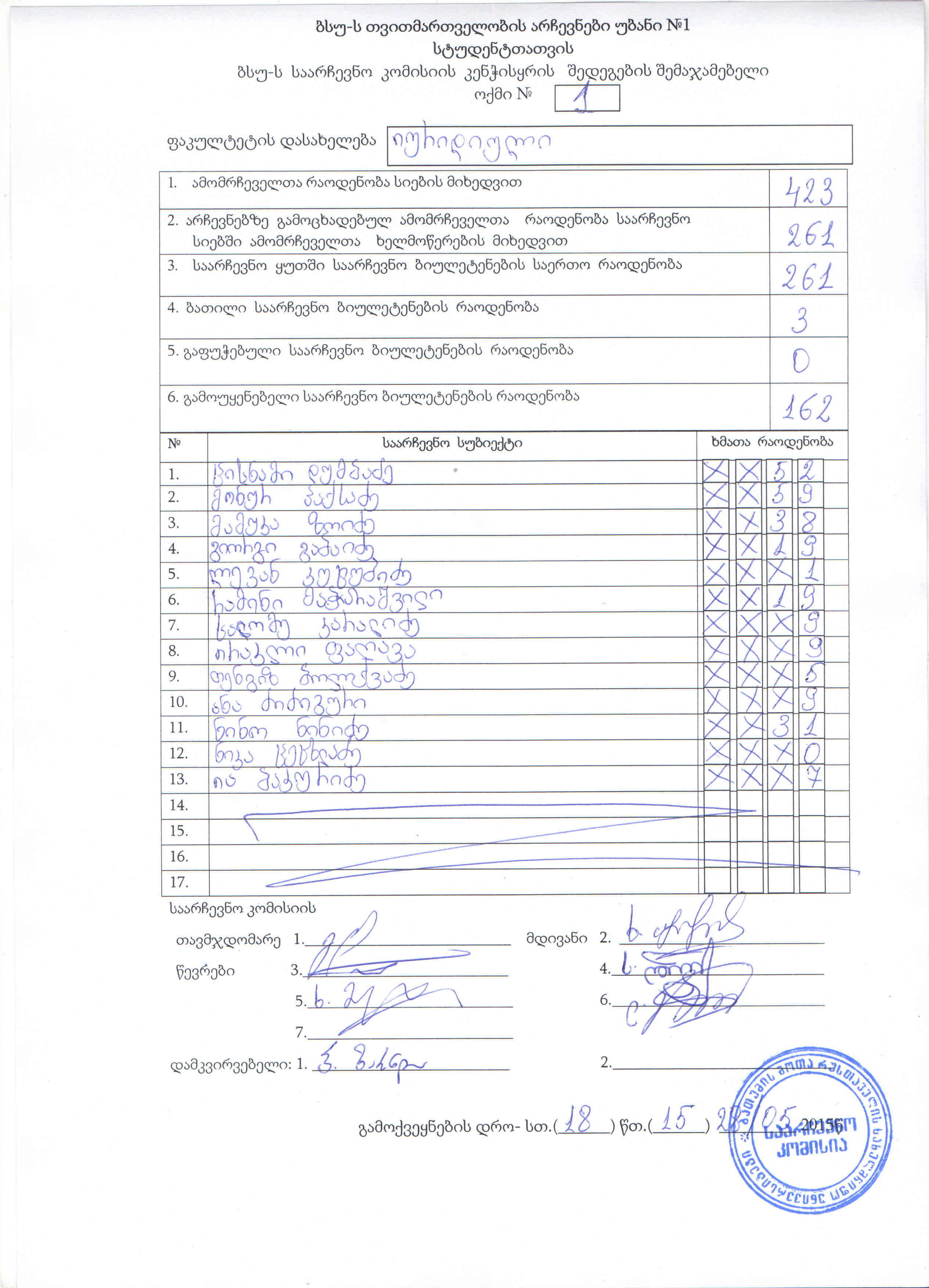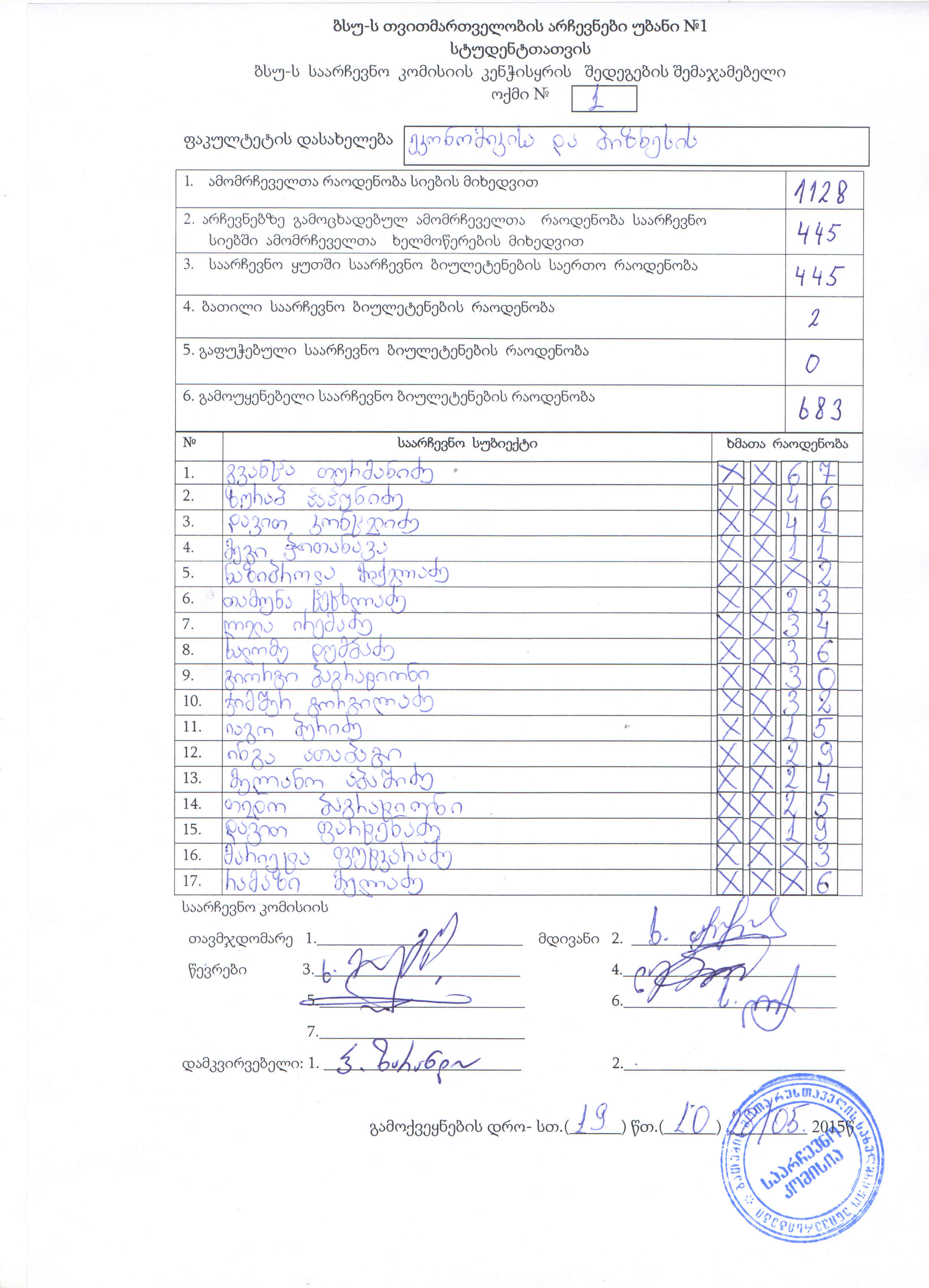 ბსუ-ს სტუდენტური თვითმართველობის 2015 წლის 28 მაისს ჩატარებული არჩევნების შედეგები