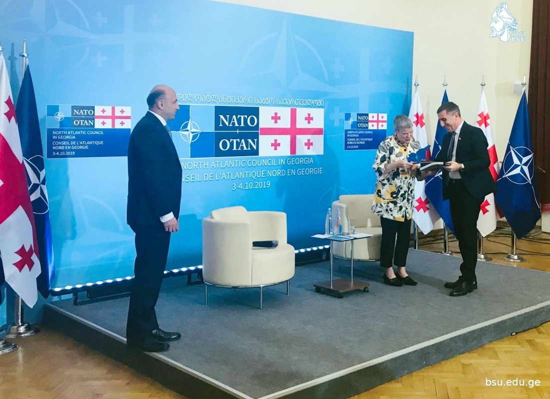 Deputy Secretary General of NATO Rose Gottemoeller met the students from western Georgia higher education institutions at Batumi Shota Rustaveli State University. At the meeting, the Deputy Secretary General spoke about the NATO-Georgia relationship, the world security challenges and the mechanisms for dealing with it together with the students and answered some questions from students. At the end of the meeting, Rector of BSU Merab Khalvashi expressed gratitude towards Rose Gottemoeller for the visit and handed a book "Treasure of Adjara" and a map of Georgia with the logo of NATO made by BSU Fablab.