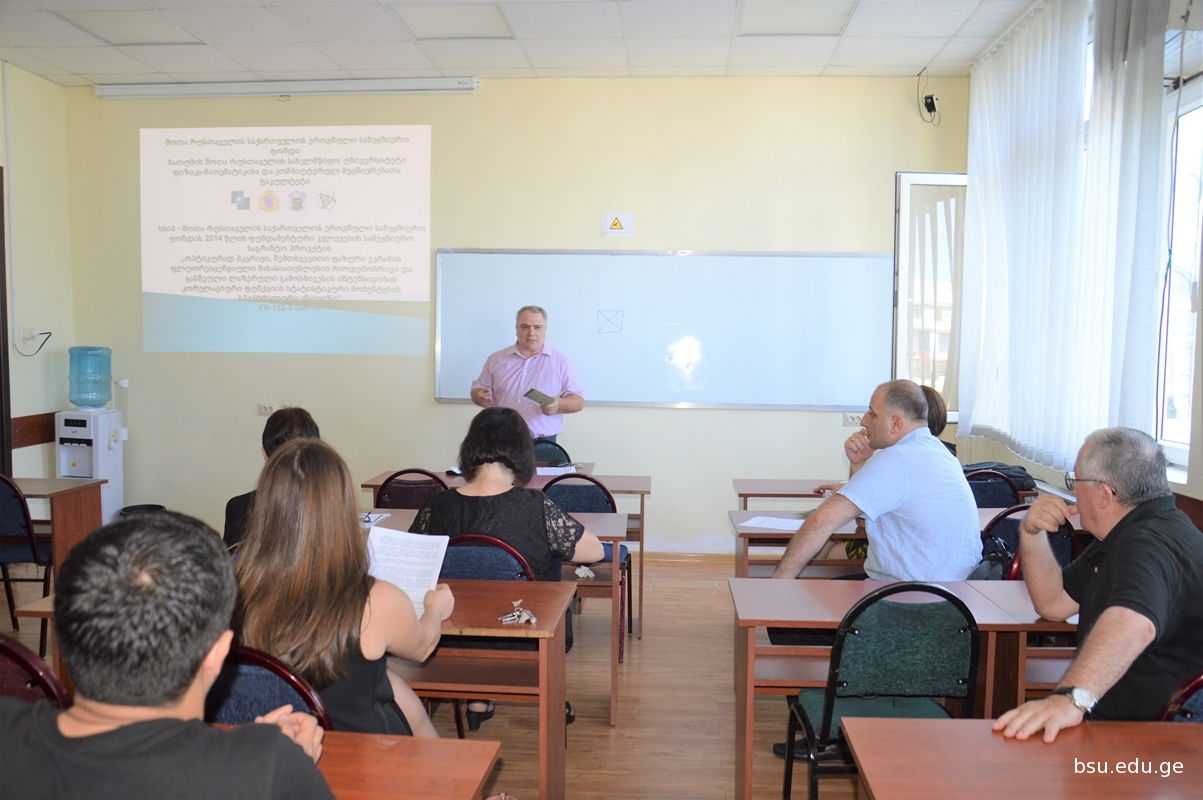 ბათუმის შოთა რუსთაველის სახელმწიფო უნივერსიტეტში შოთა რუსთაველის სამეცნიერო ფონდის ფუნდამენტური კვლევების სამეცნიერო საგრანტო პროექტის „ოპტიკურად მკვრივი, შემთხვევითი ფაზური ეკრანის ფლუორესცენციული მახასიათებლების რაოდენობრივი და გაბნეული ლაზერული გამოსხივების ინტენსივობის კორელაციური ფუნქციის სტატისტიკური მომენტების სპექტრალური ანალიზი“ სადემონსტრაციო დღე გაიმართა. სამეცნიერო პროექტის ხელმძღვანელმა, პროფესორმა ნუგზარ ღომიძემ პროექტის მონაწილეებთან ერთად, სამწლიანი კვლევის შედეგები წარმოადგინა და მის მნიშვნელობაზე ისაუბრა. პროექტის განხორციელებაში მონაწილეობდა კონსტრუქტორთა ჯგუფი (ხელმძღვანელი ზაზა დავითაძე), ექსპერიმენტატორთა ჯგუფი (ხელმძღვანელი ზურაბ შაშიკაძე), თეორეტიკოსთა ჯგუფი (ხელმძღვანელი იზოლდა ჯაბნიძე) და მოდელირების ჯგუფი (ხელმძღვანელი მირანდა ხაჯიშვილი). სადემონსტაციო დღის დასასრულს, მკვლევარები პროექტის ფარგლებში შეძენილ სამეცნიერო აპარატურასა და ლაბორატორიას გაეცნენ.