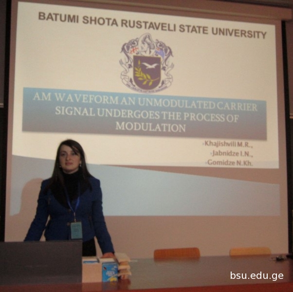ბათუმის შოთა რუსთაველის სახელმწიფო უნივერსიტეტის ფიზიკა-მათემატიკისა და კომპიუტერულ მეცნიერებათა ფაკულტეტის დოქტორანტმა მირანდა ხაჯიშვილმა შოთა რუსთაველის ეროვნული სამეცნიერო ფონდის „2013-2014 წლების დოქტორანტურის საგანმანათლებლო პროგრამების“ (მეცნიერ-ხელმძღვანელი პროფესორი ნუგზარ ღომიძე) გრანტის ფარგლებში მონაწილეობა მიიღო საერთაშორისო სამეცნიერო კონფერენციაში „თანამედროვე მაღალი ტექნოლოგიები”. ისრაელის ქალაქ თელ-ავივში გამართულ ერთკვირიან სამეცნიერო სესიაზე ახალგაზრდა მკვლევარმა მოხსენება წარადგინა თემაზე: „AM Waveform An Unmodulated Carrier Signal Undergoes The Proccess Of Modulation»“.