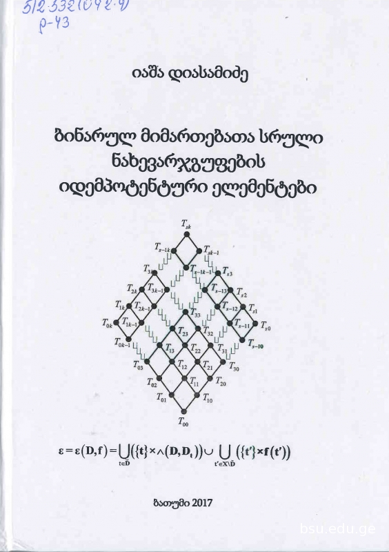პროფესორმა იაშა დიასამიძემ გამოსცა სახელმძღვანელოები „ბინალურ მიმართებათა სრული ნახევარჯგუფების იდემპოტენტური ელემენტები“ და „ბინალურ მიმართებათა სრული ნახევარჯგუფების რეგულარული ელემენტები“. ორივე მათგანი ჩართულია ბსუ-ს ბიბლიოთეკის ფონდში და ელოდება მკითხველს.