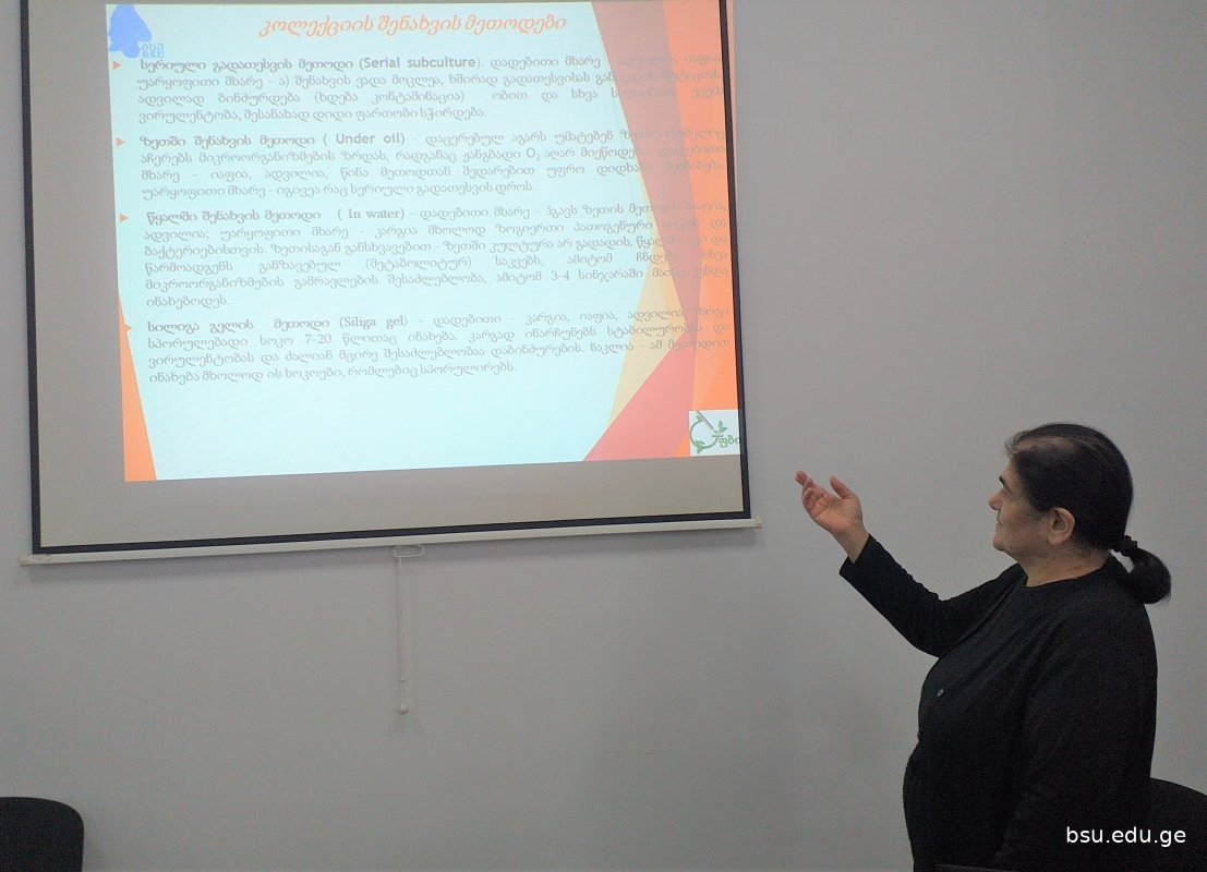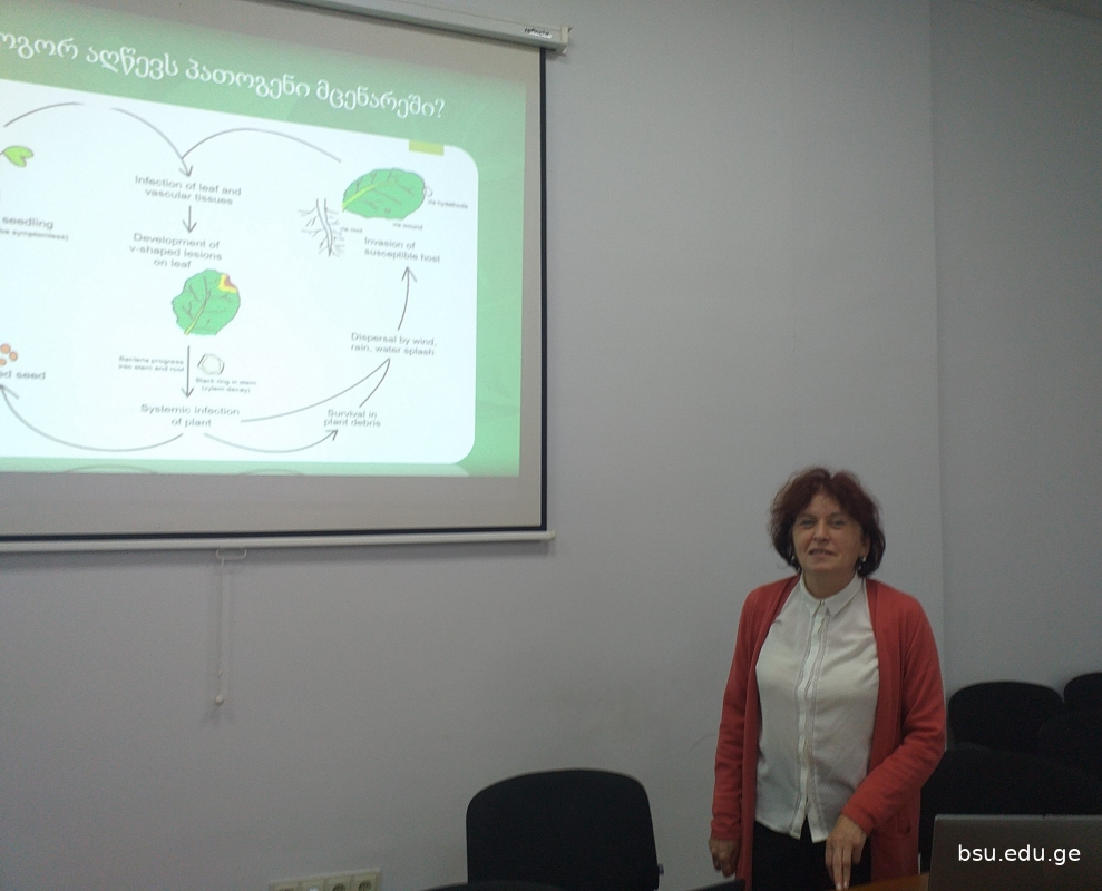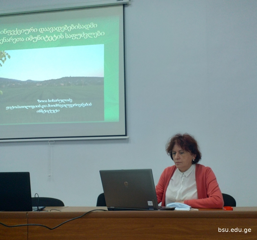ბსუ-ს ფიტოპათოლოგიის და ბიომრავალფეროვნების ინსტიტუტში საქმიანი ვიზიტით იმყოფებოდნენ საქართველოს აგრარული უნივერსიტეტის ს. დურმიშიძის ბიოქიმიის და ბიოტექნოლოგიის ინსტიტუტის მეცნიერები: ბიოლოგიური ჟანგვის ლაბორატორიის ხელმძღვანელი, პროფესორი გია ხატისაშვილი, უნივერსიტეტის პროფესორი თამარ ვარაზი, ასოცირებული პროფესორები მარიცა ყურაშვილი და მარინა ფრუიძე. ვიზიტის მიზანი იყო მათი სამეცნიერო საქმიანობის გაცნობა, საერთო კვლევითი ინტერესის სფეროს გამოვლენა, სამომავლო თანამშრომლობის დაგეგმვა და „Horizon Europe 2021-2024“ კონკურსისთვის ერთობლივი საერთაშორისო პროექტის მომზადება. გია ხატისაშვილმა და თამარ ვარაზმა წარმოადგინეს მოხსენებები მათი კვლევითი მიმართულებების, განხორციელებული და მიმდინარე პროექტების შესახებ.