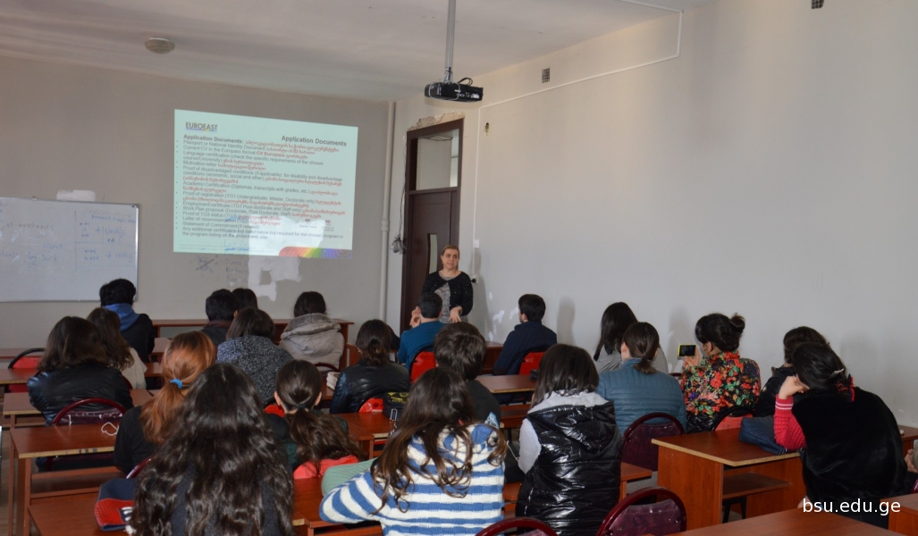 ევროკავშირის გაცვლითი საგრანტო პროგრამის „ერასმუს მუნდუსის“ პროექტების პრეზენტაცია ჩატარდა ბათუმის შოთა რუსთაველის სახელმწიფო უნივერსიტეტში. უმაღლესი საგანმანათლებლო დაწესებულების საგარეო ურთიერთობათა სამსახურის უფროსმა, პროგრამა EUROEAST-ის კოორდინატორმა ნანა ყურშუბაძემ სტუდენტებსა და პროფესორ-მასწავლებლებს 15 გაცვლითი პროგრამა წარუდგინა და კონკურსში მონაწილეობის პირობები გააცნო. უცხოეთში სწავლის შესაძლებლობა ეძლევა ყველა საფეხურის სტუდენტს, აკადემიურ პერსონალსა და მკვლევარს.