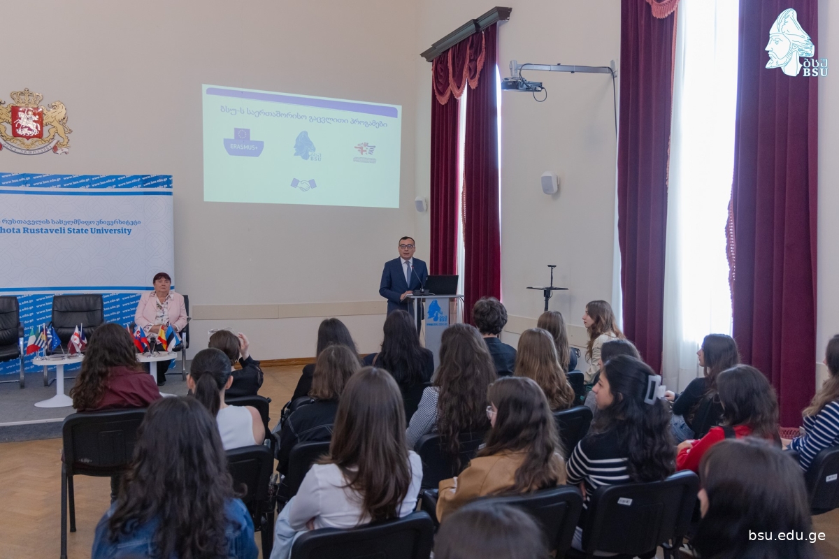 ბათუმის შოთა რუსთაველის სახელმწიფო უნივერსიტეტში საერთაშორისო გაცვლითი პროგრამების წარდგენა გაიმართა. ბსუ-ს რექტორმა, ტიტე აროშიძემ, სტრატეგიული განვითარებისა და საერთაშორისო ურთიერთობების დეპარტამენტის უფროსმა მარინე გიორგაძემ და მთავარმა სპეციალისტმა ლელა თავართქილაძემ სტუდენტებს 2025-2026 სასწავლო წლისთვის გამოცხადებული „Erasmus+“-ის და აჭარის ა.რ. განათლებისა და სპორტის სამინისტროს მიერ დაფინანსებული პროგრამები გააცნეს.