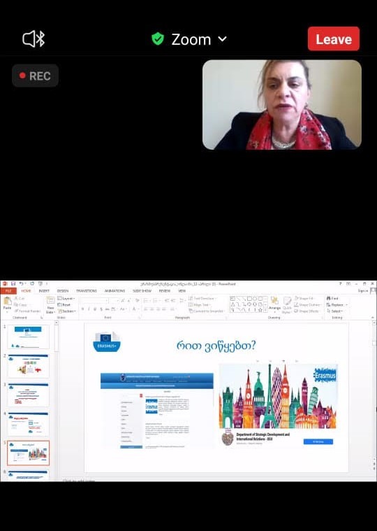 „ერაზმუს+“-ის ადმინისტრაციული პერსონალის გაცვლითი პროგრამის ფარგლებში 11-15 აპრილს ბსუ-ში ვიზიტით იმყოფებოდა მურსიის კათოლიკური უნივერსიტეტის საერთაშორისო ურთიერთობების სამსახურის წარმომადგენელი რაკელ კალატაი ლოპესი. სტუმარი ერთი კვირის განმავლობაში გაეცნო უნივერსიტეტის სტრატეგიული განვითარებისა და საგარეო ურთიერთობათა დეპარტამენტის მუშაობის პრინციპებსა და სპეციფიკას, ასევე ისაუბრა სამომავლო თანამშრომლობაზე. რაკელ კალატაი ლოპესმა ჩაატარა საინფორმაციო შეხვედრა ბსუ-ს სტუდენტებთან და გააცნო მათ კათოლიკურ უნივერსიტეტში სწავლის, გაცვლით პროგრამაში და საზაფხულო სკოლაში მონაწილეობის პირობები.