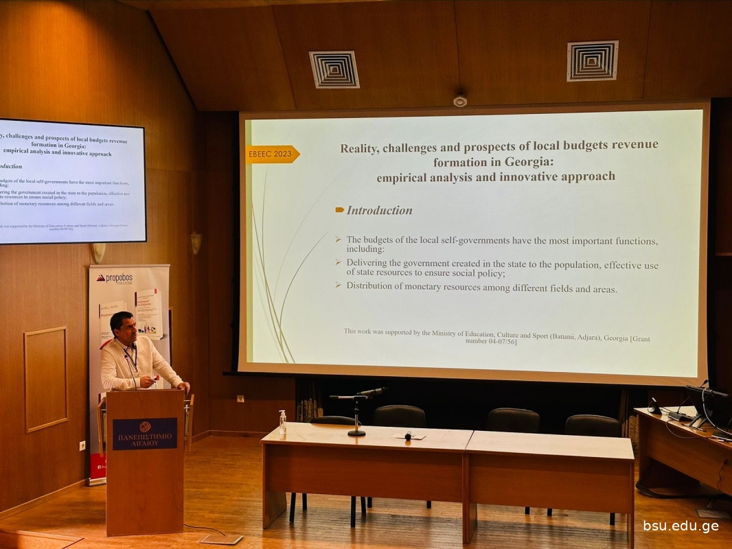 12-14 მაისს, საბერძნეთის ეგეოსის ზღვის უნივერსიტეტში გამართულ საერთაშორისო სამეცნიერო კონფერენციაში - ბალკანეთისა და აღმოსავლეთ ევროპის ქვეყნების ეკონომიკა, აჭარის ავტონომიური რესპუბლიკის განათლების, კულტურისა და სპორტის სამინისტროს „უმაღლესი განათლების ხელშეწყობის“ პროგრამის დაფინანსებით მონაწილეობა მიიღო ეკონომიკისა და ბიზნესის ფაკულტეტის ასოცირებულმა პროფესორმა გიორგი აბუსელიძემ. საერთაშორისო კონფერენციაზე გიორგი აბუსელიძემ წარადგინა მოხსენება თემაზე: „ადგილობრივი ბიუჯეტის შემოსავლების ფორმირება, რეალობა, გამოწვევები და პერსპექტივები საქართველოში: ემპირიული ანალიზი და ინოვაციური მიდგომები“. ფორუმის დასრულების შემდეგ დაიგეგმა ერთობლივი კვლევების და სხვადასხვა სამეცნიერო აქტივობის ორგანიზება და განხორციელება.