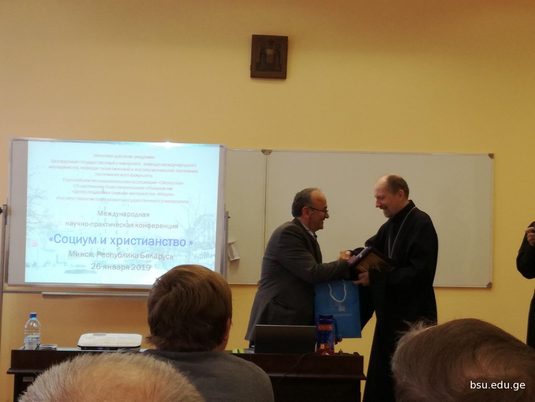 26-28 იანვარს, ეკონომიკისა და ბიზნესის ფაკულტეტის ასოცირებულმა პროფესორმა, ეკონომიკის დეპარტამენტის ხელმძღვანელმა მურმან ცეცხლაძემ და ამავე ფაკულტეტის ეკონომიკის საბაკალავრო საგანმანათლებლო პროგრამის მე-4 სასწავლო წლის სტუდენტმა, შოთა რუსთაველის სახელობის სტიპენდიანტმა ხათუნა თურმანიძემ მონაწილეობა მიიღეს მინსკის სასულიერო აკადემიაში გამართულ მე-3 საერთაშორისო სამეცნიერო-პრაქტიკულ კონფერენციაში „სოციუმი და ქრისტიანობა“. კონფერენცია მინსკის სასულიერო აკადემიის, ბელორუსიის სახელმწიფო უნივერსიტეტის, ევროპული კვლევითი ასოციაციის ”Oikonomos”, საზოგადოებრივი საქველმოქმედო გააერთიანების „ოჯახური და სამშობიარო დახმარების ცენტრი Матуля“-სა და ბელორუსიის სახელმწიფო უნივერსიტეტის თეოლოგიის ინსტიტუტის ორგანიზებით ჩატარდა.