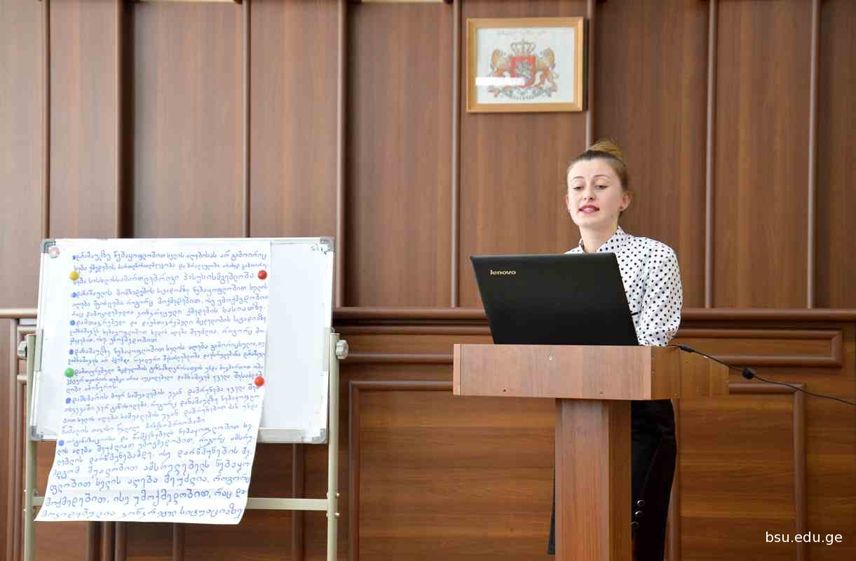 იურიდიულ ფაკულტეტის სტუდენტები საუნივერსიტეტო სამეცნიერო კონფერენციაში მონაწილეობენ. სისხლის სამართლის მიმართულებით რვა მოხსენება იყო წარმოდგენილი. მომხსენებლებმა წაიკითხეს მოხსნებები თემებზე: „დანაშაულზე ნებაყოფლობით ხელის აღება“, „დანაშაულის მცდელობის შემადგენლობის სუბიექტური მხარე“, „მოძალადისა და მსხვერპლის სამართლებრივი და სამედიცინო-ფსიქოლოგიური მდგომარეობა ოჯახური ძალადობის მაგალითზე“ „სისხლის სამართლებრივი დანაშაულის ასაკი“, „თეორიები სასჯელის მიზნებზე“,ინიძე, „ვიქტიმოლოგია“, „ევთანაზია და საკანონმდებლო პრობლემები“, და „ისლამისა და ტერორიზმის კანონები“.