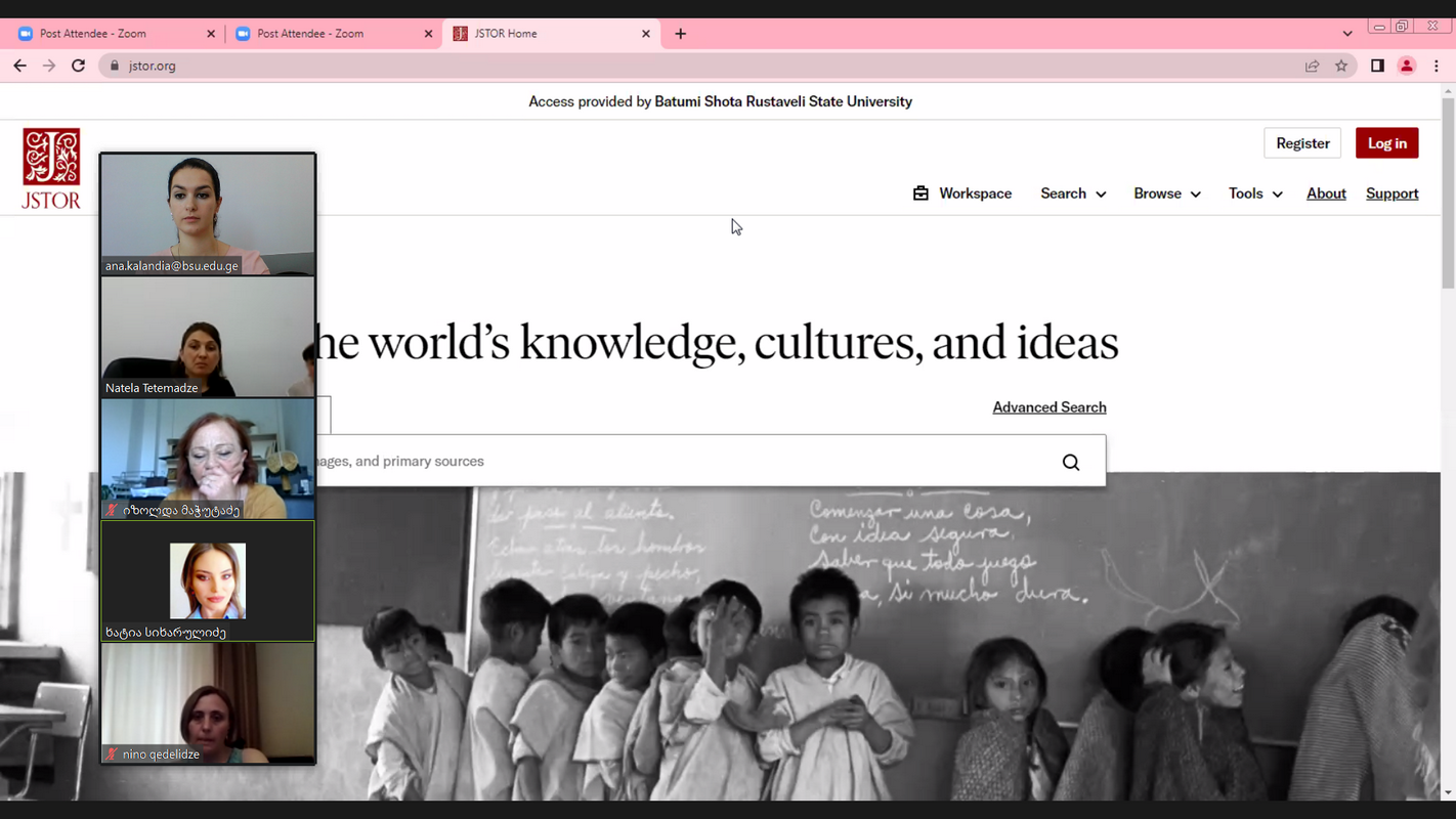 ბათუმის შოთა რუსთაველის სახელმწიფო უნივერსიტეტის სამეცნიერო კვლევების სამსახურისა და ბიბლიოთეკის თანამშრომლებმა ფაკულტეტების პროფესორ-მასწავლებლებისა და სამეცნიერო ინსტიტუტების მკვლევრებისათვის პრეზენტაციები ჩაატარეს JSTOR-ის სამეცნიერო ბაზაში. ბსუ JSTOR-ის სამეცნიერო ბაზაში გაწევრიანდა, რომელიც მუშაობს გამომცემლებთან და ბიბლიოთეკებთან სამეცნიერო ჟურნალების, წიგნებისა და ფოტო-მასალის დიგიტალიზაციაზე. JSTOR-ი, ციფრული ბიბლიოთეკა უზრუნველყოფს წვდომას 12 მილიონ სტატიაზე, წიგნებსა და 75 დისციპლინის პირველად წყაროებზე. სტატიები, ჟურნალები და წიგნები ხელმისაწვდომია ინგლისურ, ფრანგულ, გერმანულ, იტალიურ, ესპანურ, პოლონურ, ლათინურ და სხვა ენებზე, რომლებიც დახმარებას გაუწევს მკვლევრებს, მეცნიერებს, სტუდენტებსა და სხვა დაინტერესებულ პირებს.