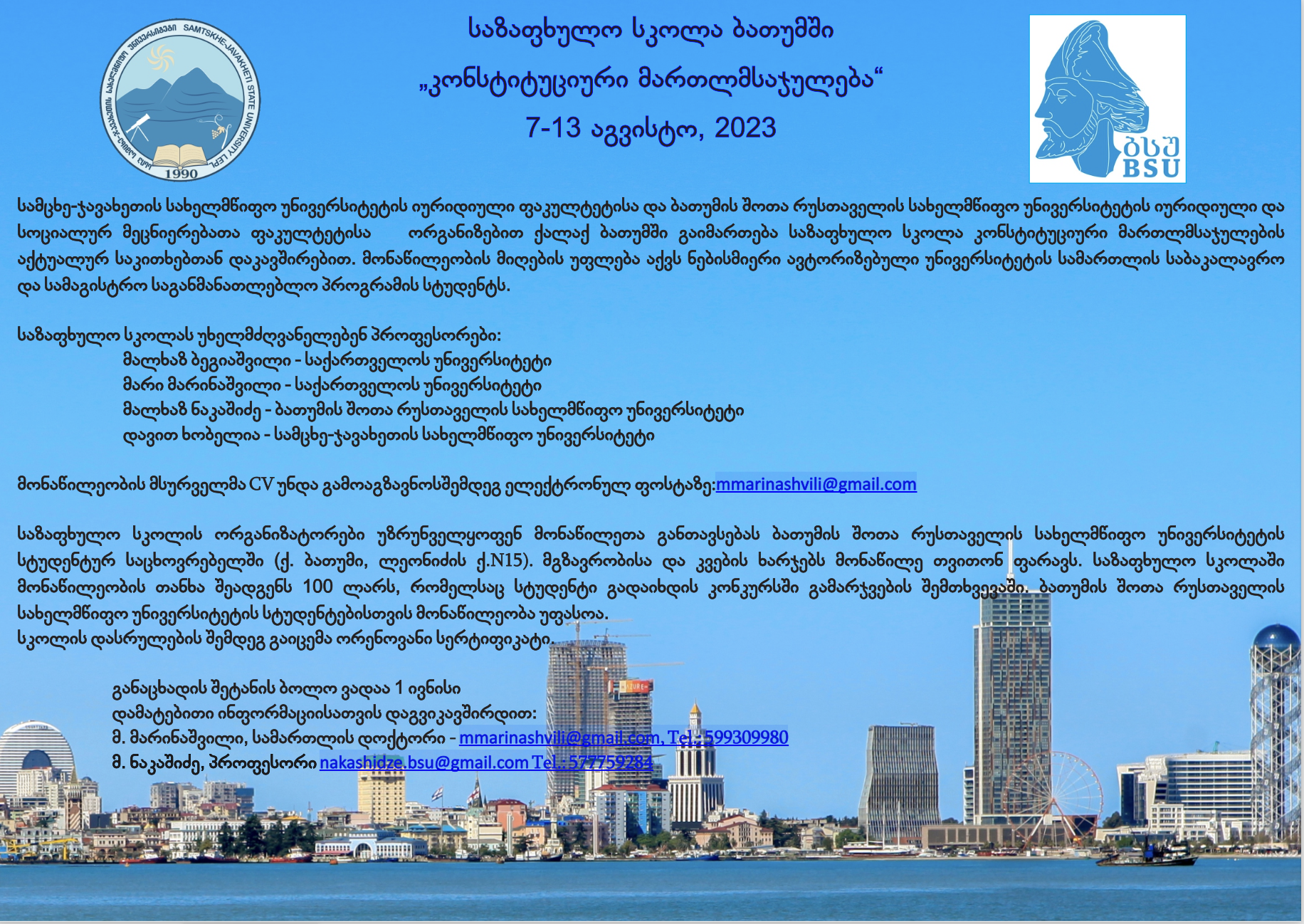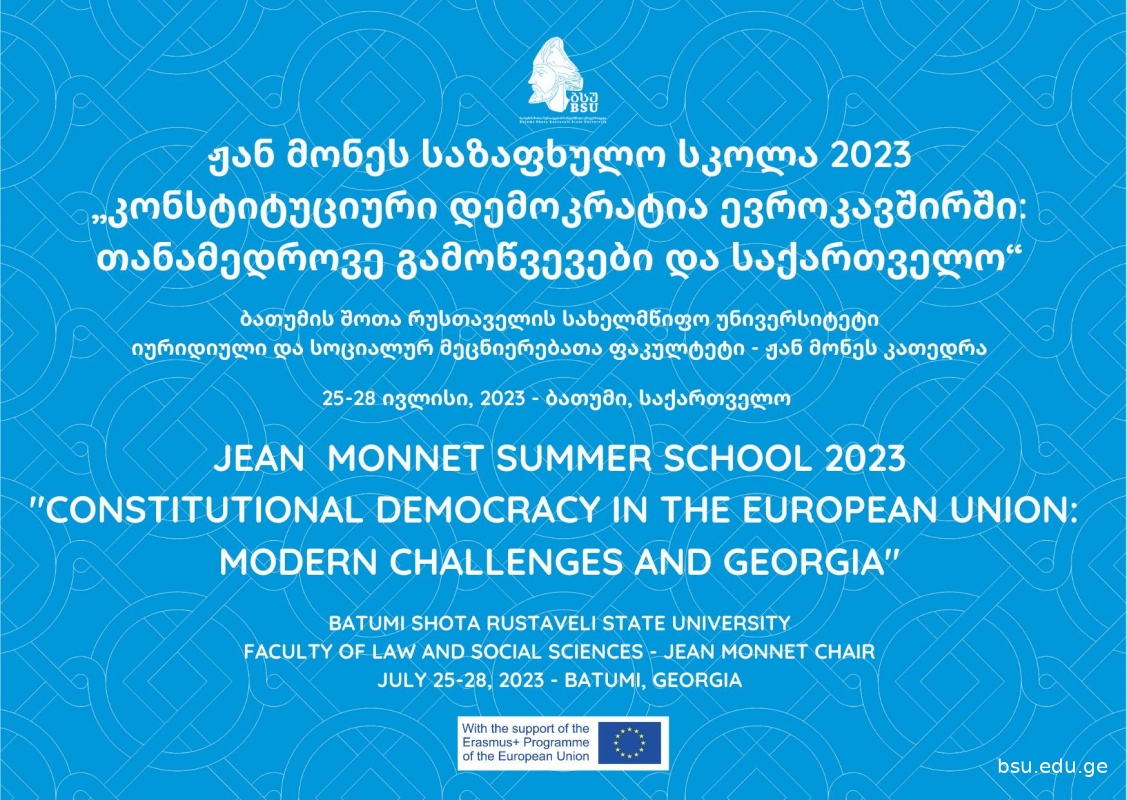 ბათუმის შოთა რუსთაველის სახელმწიფო უნივერსიტეტში ჟან მონეს საზაფხულო სკოლა „კონსტიტუციური დემოკრატია ევროპის კავშირში: ძირითადი გამოწვევები და საქართველო“ გაიხსნა. საზაფხულო სკოლაში საქართველოს სხვადასხვა უნივერსიტეტის სამართლის, საერთაშორისო ურთიერთობების, ევროპისმცოდნეობის და საჯარო მმართველობის სპეციალობის 30 სტუდენტი მონაწილეობს. ოთხდღიანი სკოლის მიზანია, ახალგაზრდებს მისცეს საბაზისო ცოდნა ევროკავშირის ინსტიტუტების, საქართველოში ევროინტეგრაციის კუთხით არსებული მექანიზმებისა და პროცესების შესახებ.