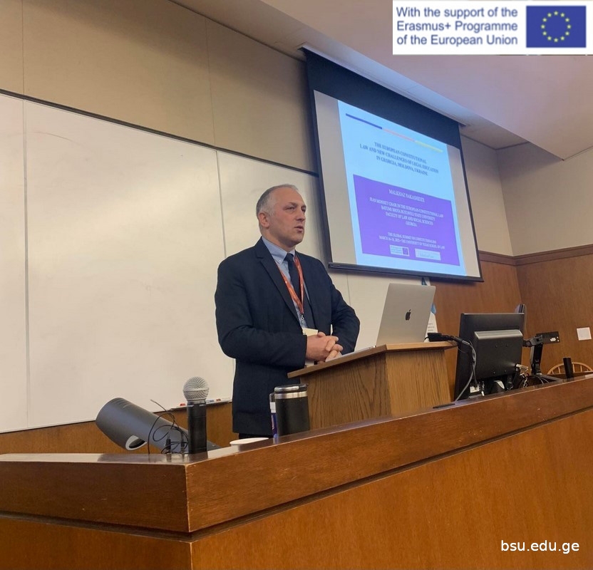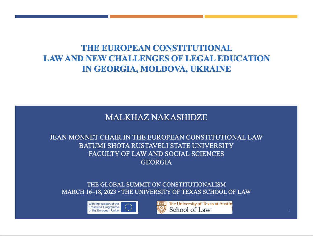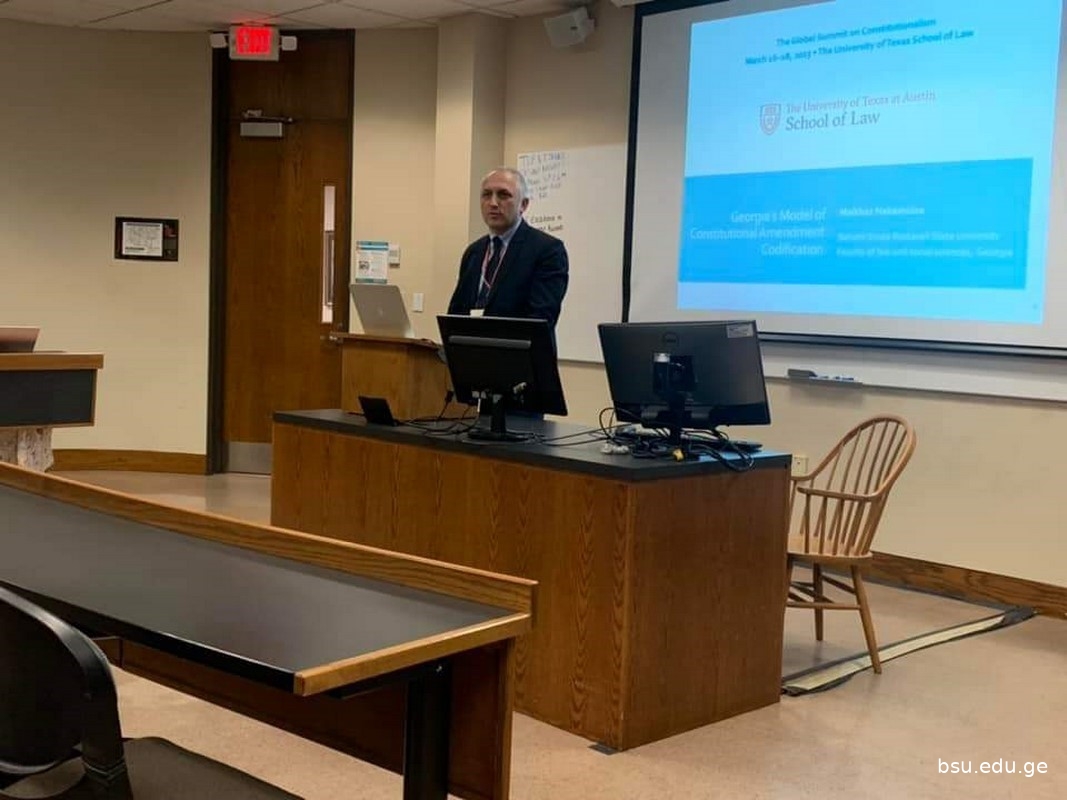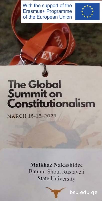 16-18 მარტს ჟან მონეს კათედრის ხელმძღვანელმა, პროფესორმა მალხაზ ნაკაშიძემ აშშ-ში მონაწილეობა მიიღო კონსტიტუციონალიზმის გლობალურ სამიტში, სადაც წარადგინა მოხსენება თემაზე: „ევროპის კონსტიტუციურისამართალი და სამართლებრივი განათლების ახალი გამოწვევები საქართველოში, მოლდოვაში, უკრაინაში“. ნაშრომი წარმოადგენს კვლევას, რომელიც მომზადდა ბსუ-ს ჟან მონეს კათედრის პროექტის ფარგლებში. პროექტი დაფინანსებულია ევროკომისიის მიერ და მიზნად ისახავს ევროკავშირის ღირებულებების პოპულარიზაციას, ევროკავშირის შესახებ კვლევებისა და სწავლების განვითარების ხელშეწყობის გზით. კონსტიტუციონალიზმის გლობალური სამიტი (https://law.utexas.edu/the-global-summit/) არის მაღალი სამეცნიერო ღირებულების მქონე ღონისძიება, რომელშიც მონაწილეობენ მეცნიერები მთელი მსოფლიოდან. ღონისძიება ჩატარდა ტეხასის უნივერსიტეტში, ოსტინში, სამართლის სკოლის (https://law.utexas.edu/) საკონსტიტუციო კვლევების ცენტრში, რომელიც არის ერთ-ერთი წამყვანი სამეცნიერო ცენტრი არა მხოლოდ აშშ-ში, არამედ მსოფლიოს მასშტაბით.