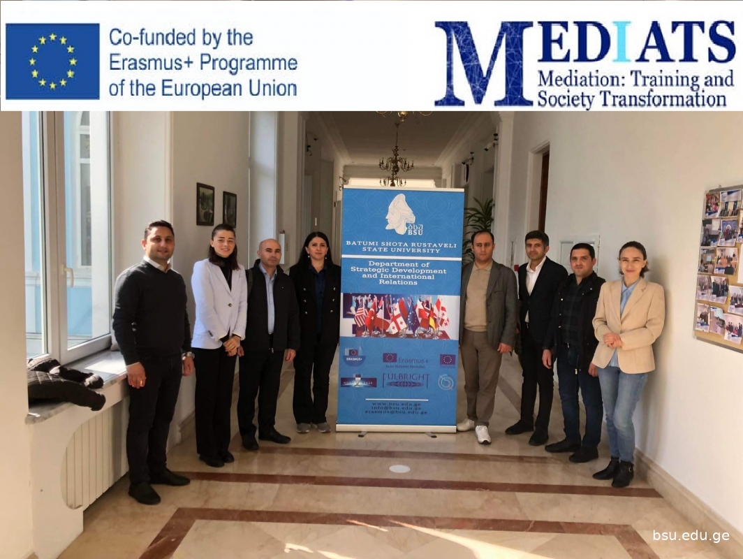 30-31 ოქტომბერს, ბათუმის შოთა რუსთაველის სახელმწიფო უნივერსიტეტმა ევროკავშირის მიერ დაფინანსებული პროექტის ფარგლებში” MEDIATS: მედიაცია:„ ტრენინგი და საზოგადოების ტრანსფორმაცია,“ კონსორციუმის მენეჯმენტის სამუშაო შეხვედრას უმასპინძლა. ღონისძიება შერეული ფორმატით მიმდინარეობდა და მონაწილეობას იღებდნენ პროექტის კონსორციუმში შემავალი უმაღლესი საგანმანათლებლო დაწესებულებების წარმომადგენლები.