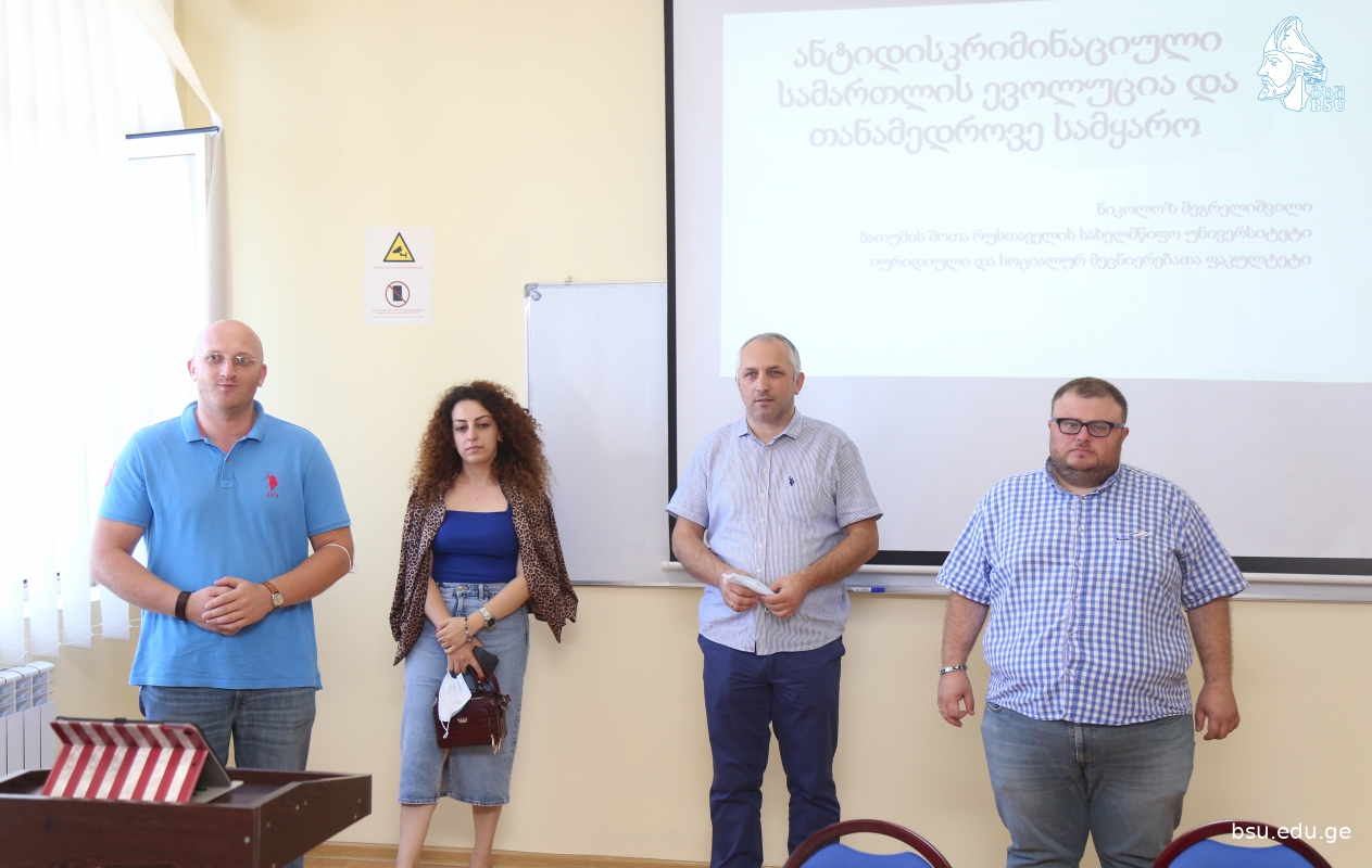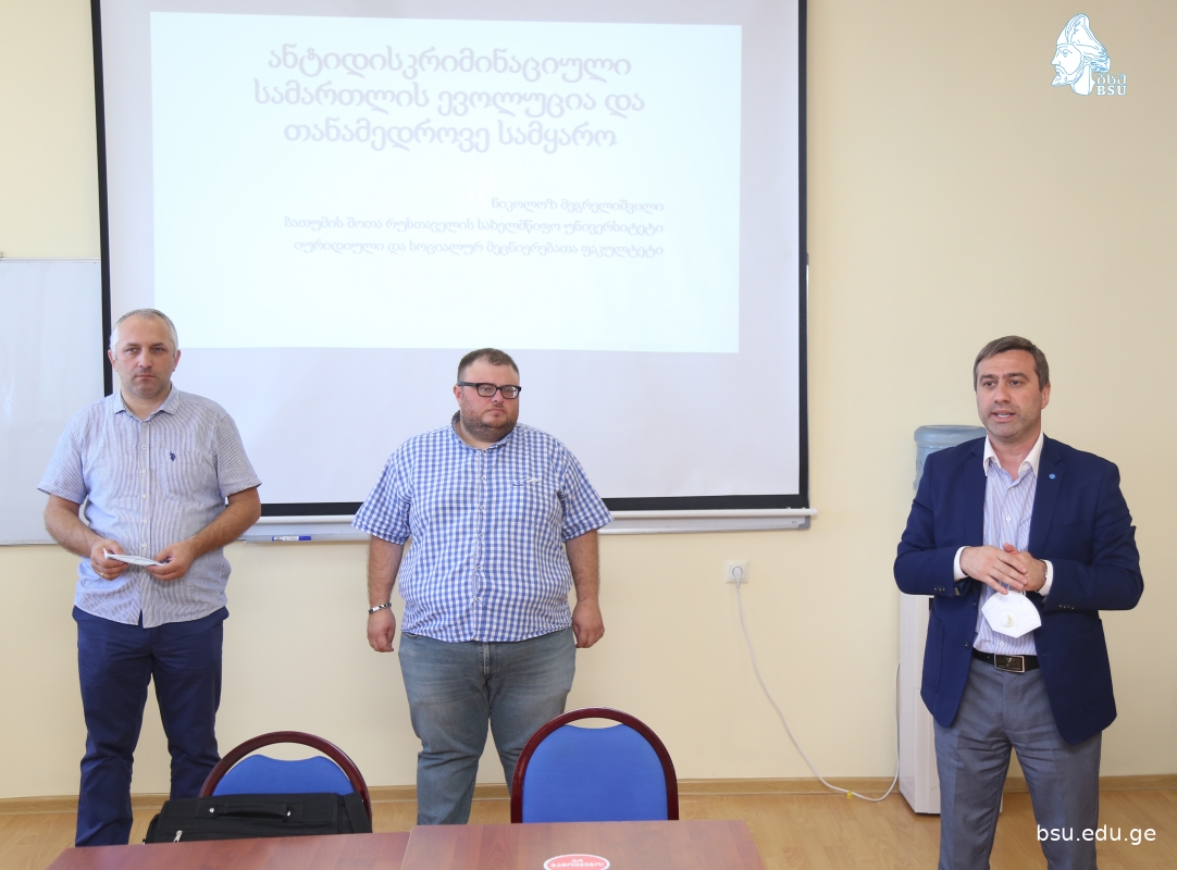 ბსუ-ს იურიდიული და სოციალურ მეცნიერებათა ფაკულტეტის სტუდენტებისთვის ტრენინგი ანტიდისკრიმინაციულ სამართალში ჩატარდა. ტრენინგს უძღვებოდნენ ბსუ-ს იურიდიული და სოციალურ მეცნიერებათა ფაკულეტის ასოცირებული პროფესორი, დეკანი ლევან ჯაყელი, ასოცირებული პროფესორი მალხაზ ნაკაშიძე, მოწვეული ლექტორი ნიკოლოზ მეგრელიშვილი, ასევე სულხან-საბა ორბელიანის უნივერსიტეტის სამართლის ფაკულტეტის დეკანი გიორგი გორაძე და მოწვეული ლექტორი ცისია ოქროპირიძე.